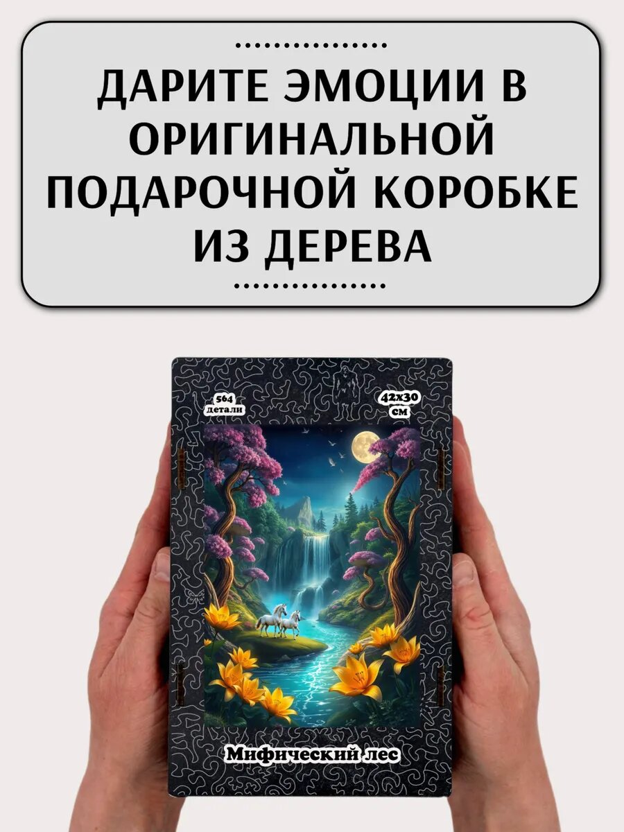 СохранитьФигурный пазл из дерева "Мифический лес" 564 детали, размер 42x30 см, в подарок для взрослых и детей интересное: