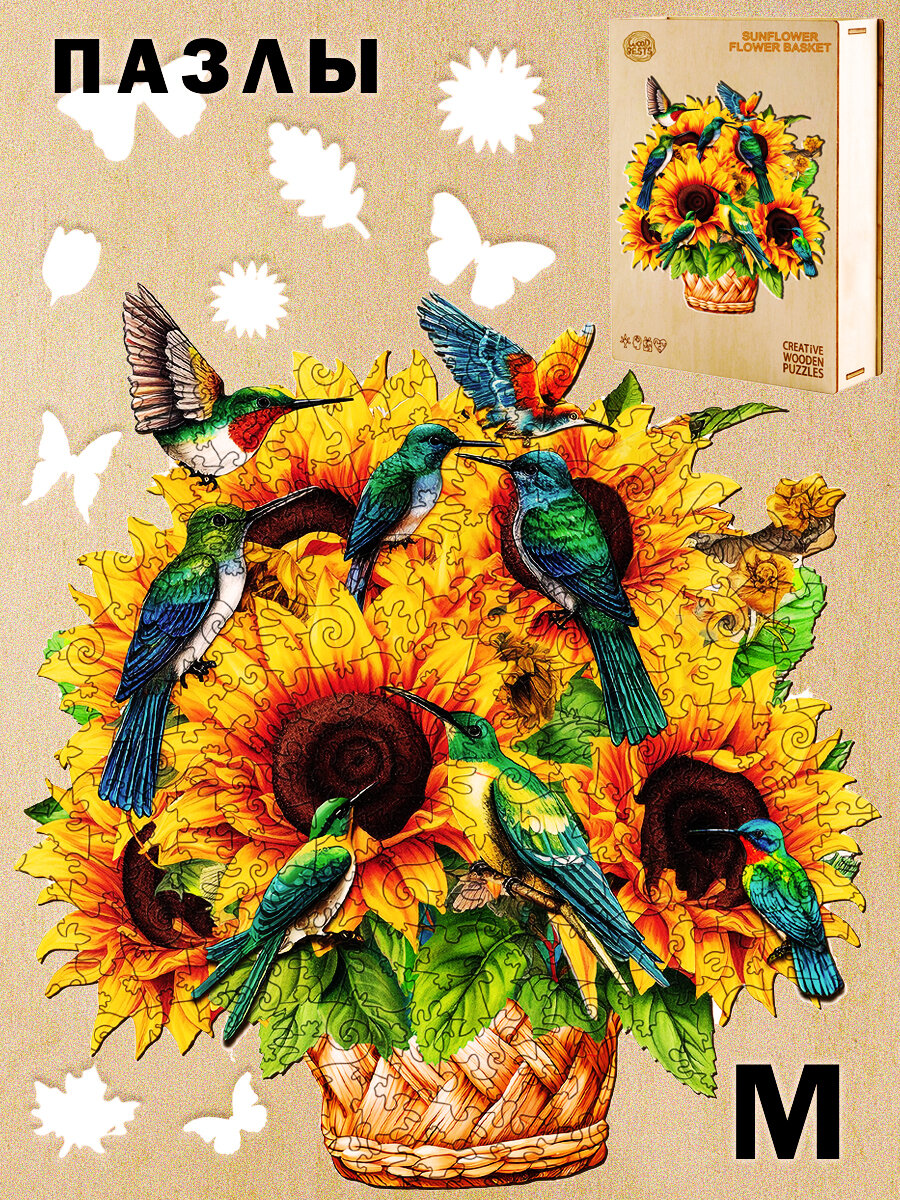 Деревянный 3D пазл Woodbests 6256-WP Корзина с Подсолнечниками M интересное: