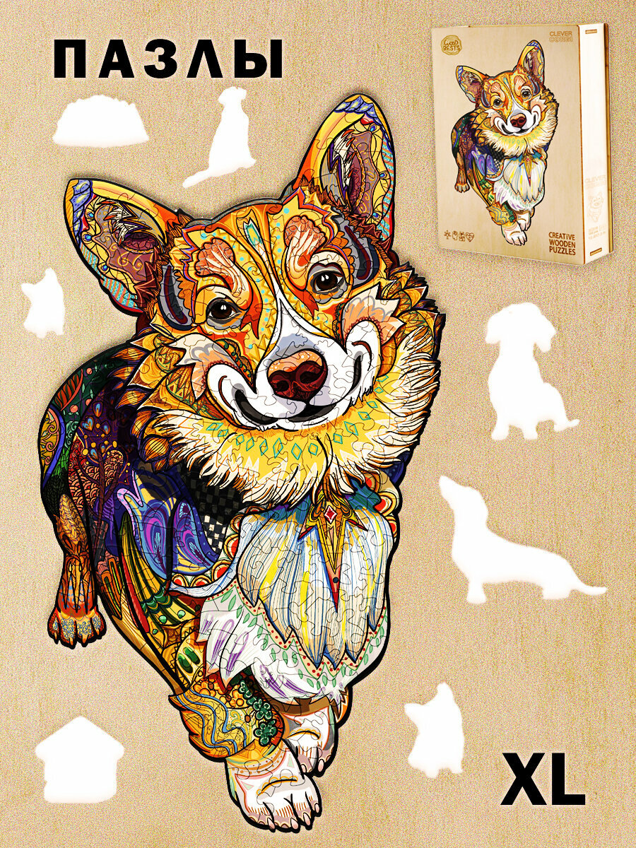 Купить Деревянный 3D пазл Woodbests 6108-WP Веселый Корги, размер XL