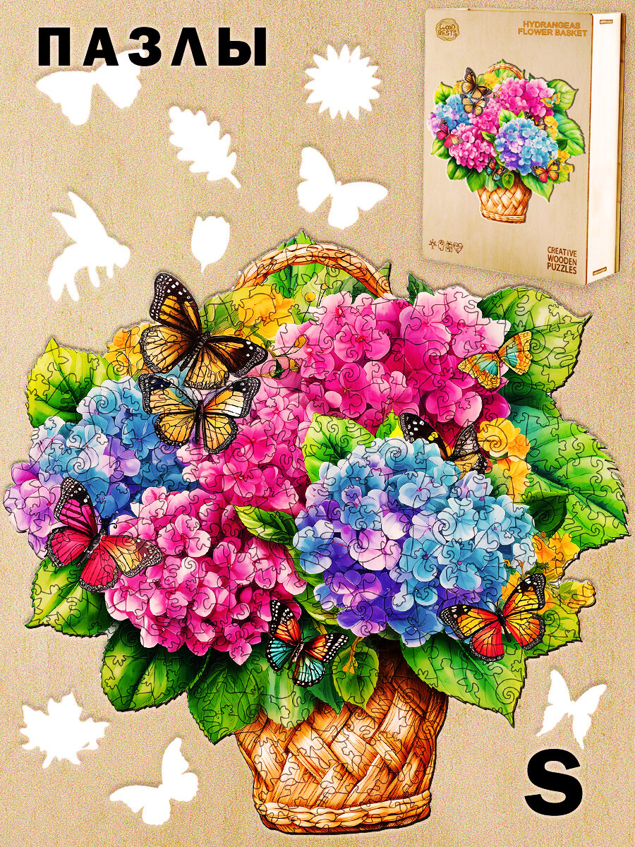 Деревянный 3D пазл Woodbests 6250-WP Корзина с Гортензиями S интересное: