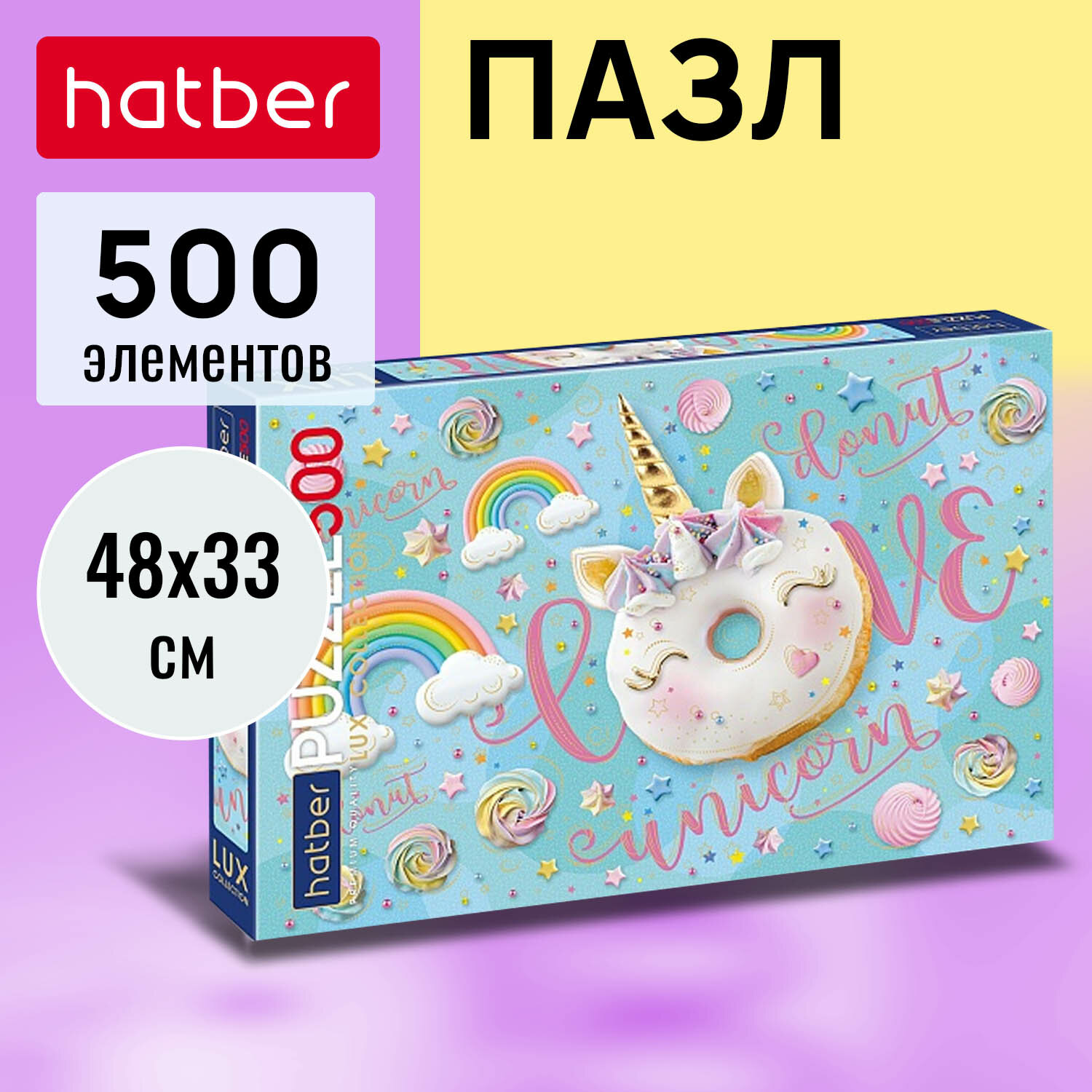 Пазл Hatber Premium LUX матовая ламинация, 3D фольга 330х480 мм -Sweet unicorn- 500 элементов интересное: