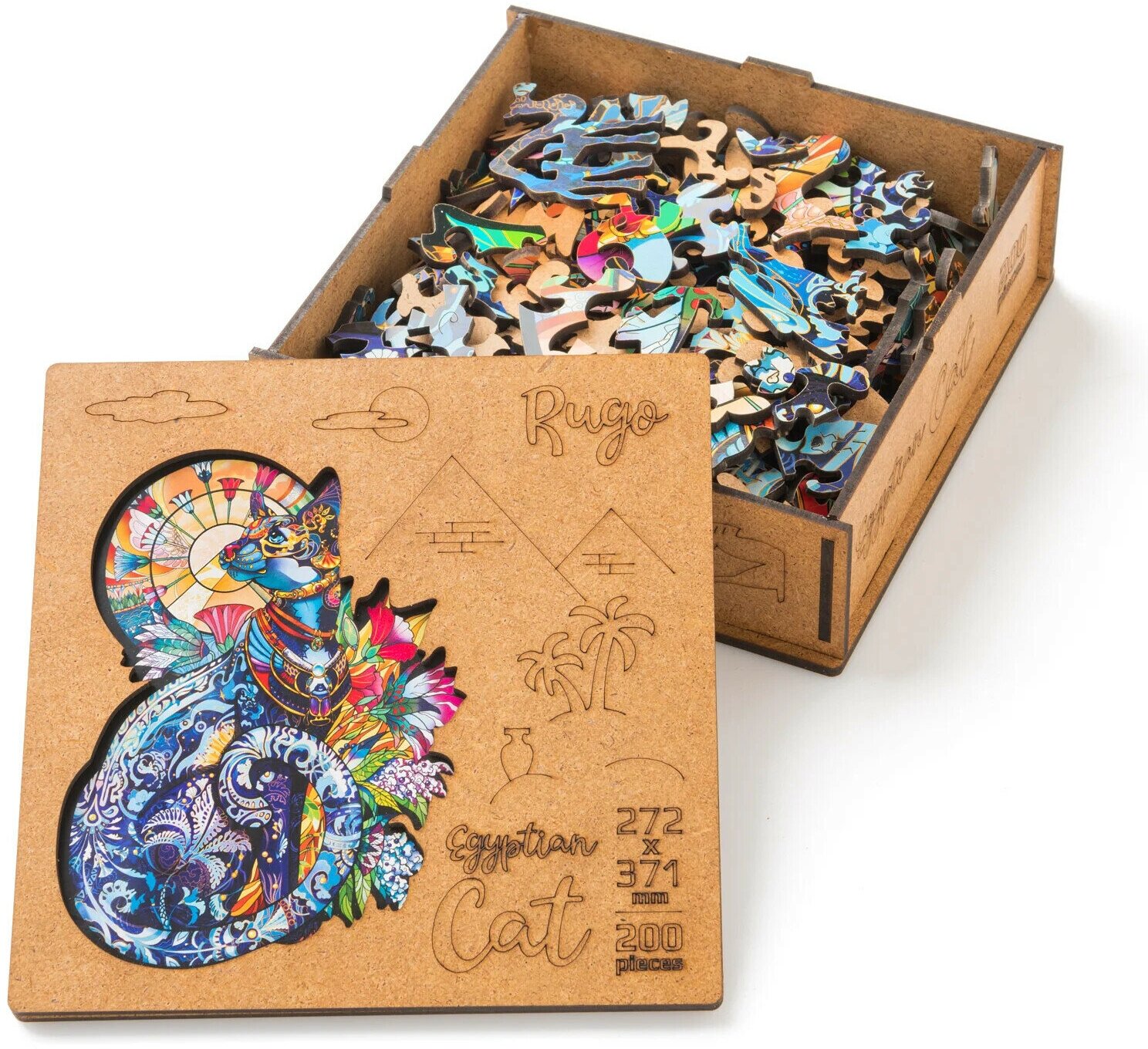 Купить Деревянные пазлы для взрослых и для детей Rugo "Кошка" 27х37 см, 200 деталей в виде животных и растений