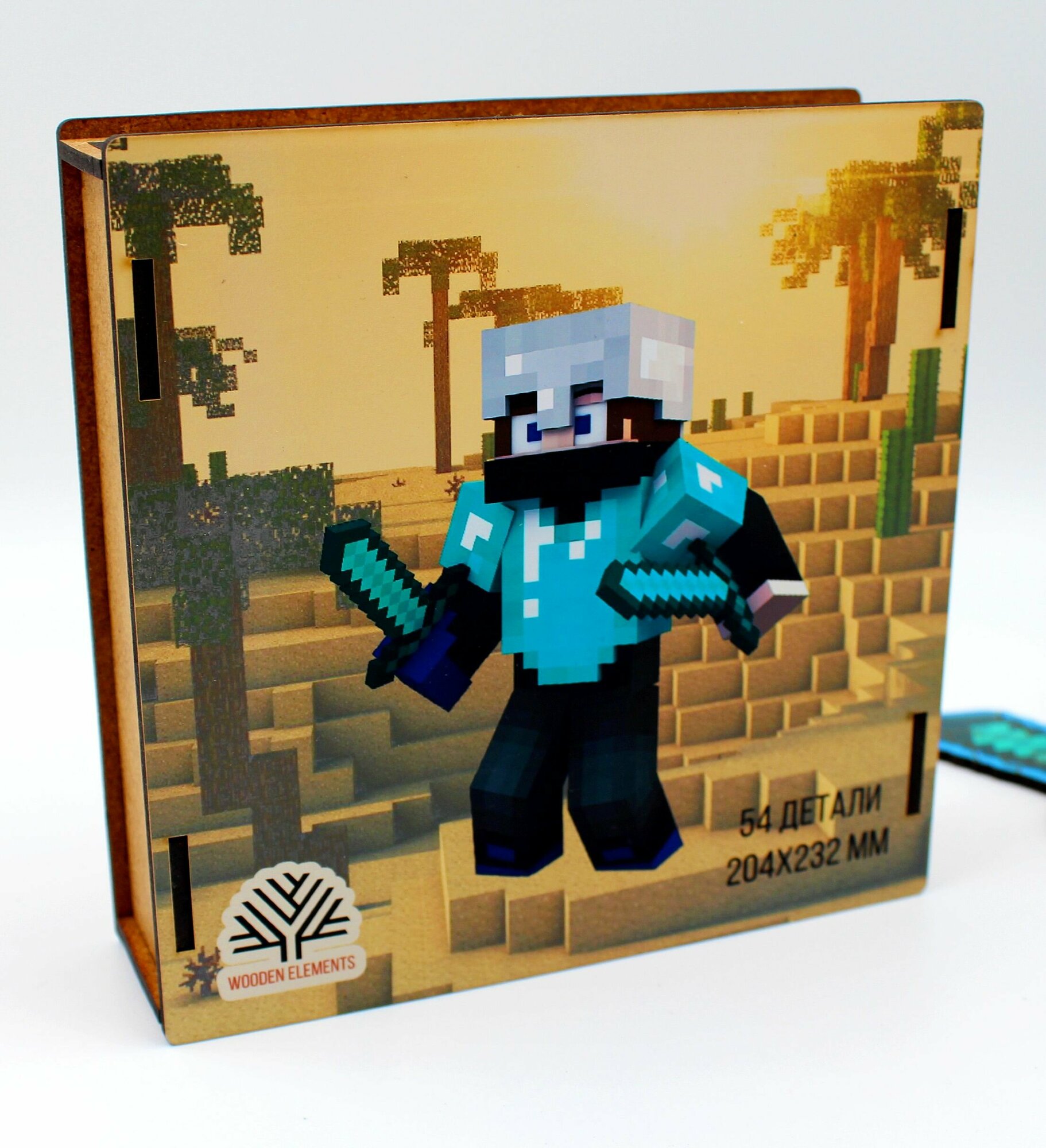 Купить Деревянный пазл для детей и взрослых "Майнкрафт"/ подарочный бокс / 54 детали