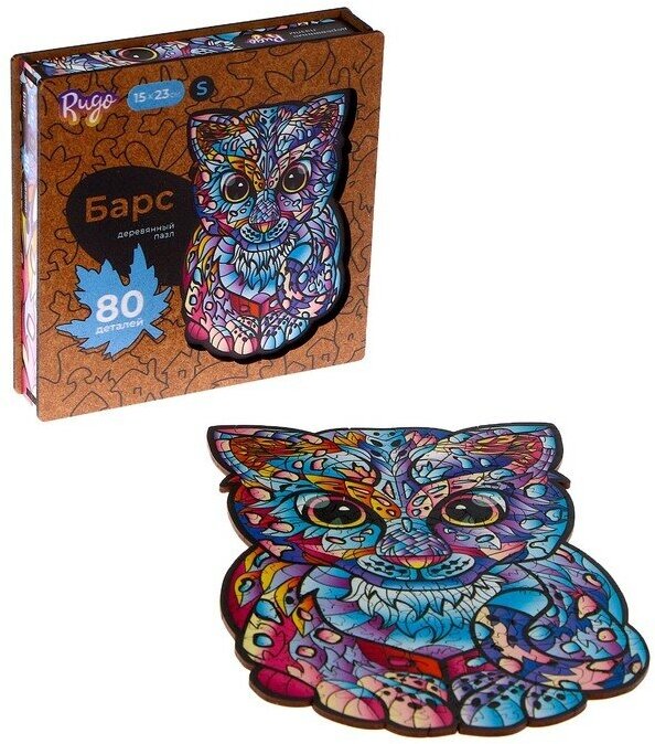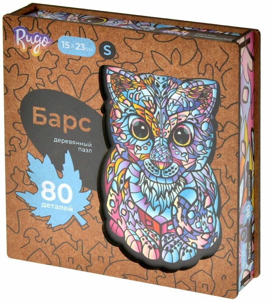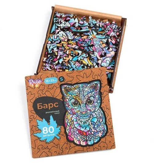 Деревянные пазлы для взрослых и для детей / Головоломка / Rugo "Барс" 16х23 см, 80 деталей в виде животных и растений интересное: