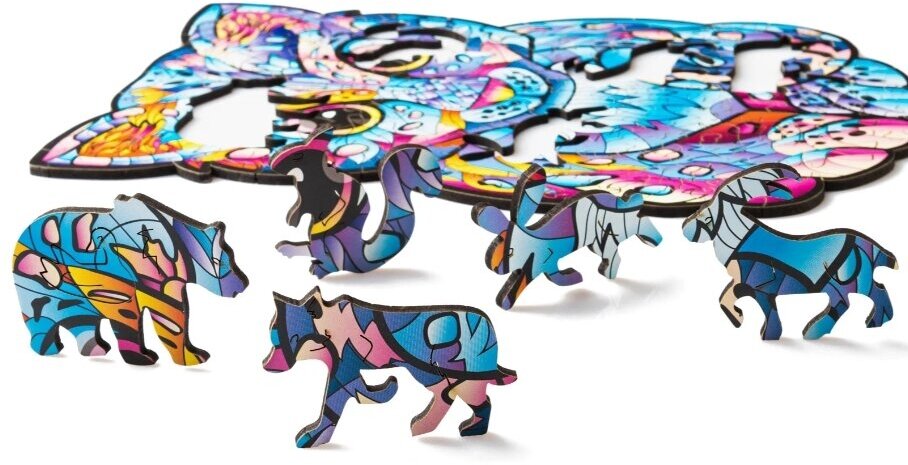 Купить Деревянные пазлы для взрослых и для детей / Головоломка / Rugo "Барс" 16х23 см, 80 деталей в виде животных и растений