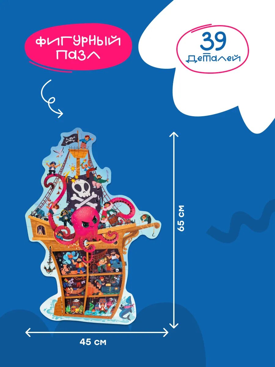 Купить Пазлы для детей фигурные Пиратский корабль