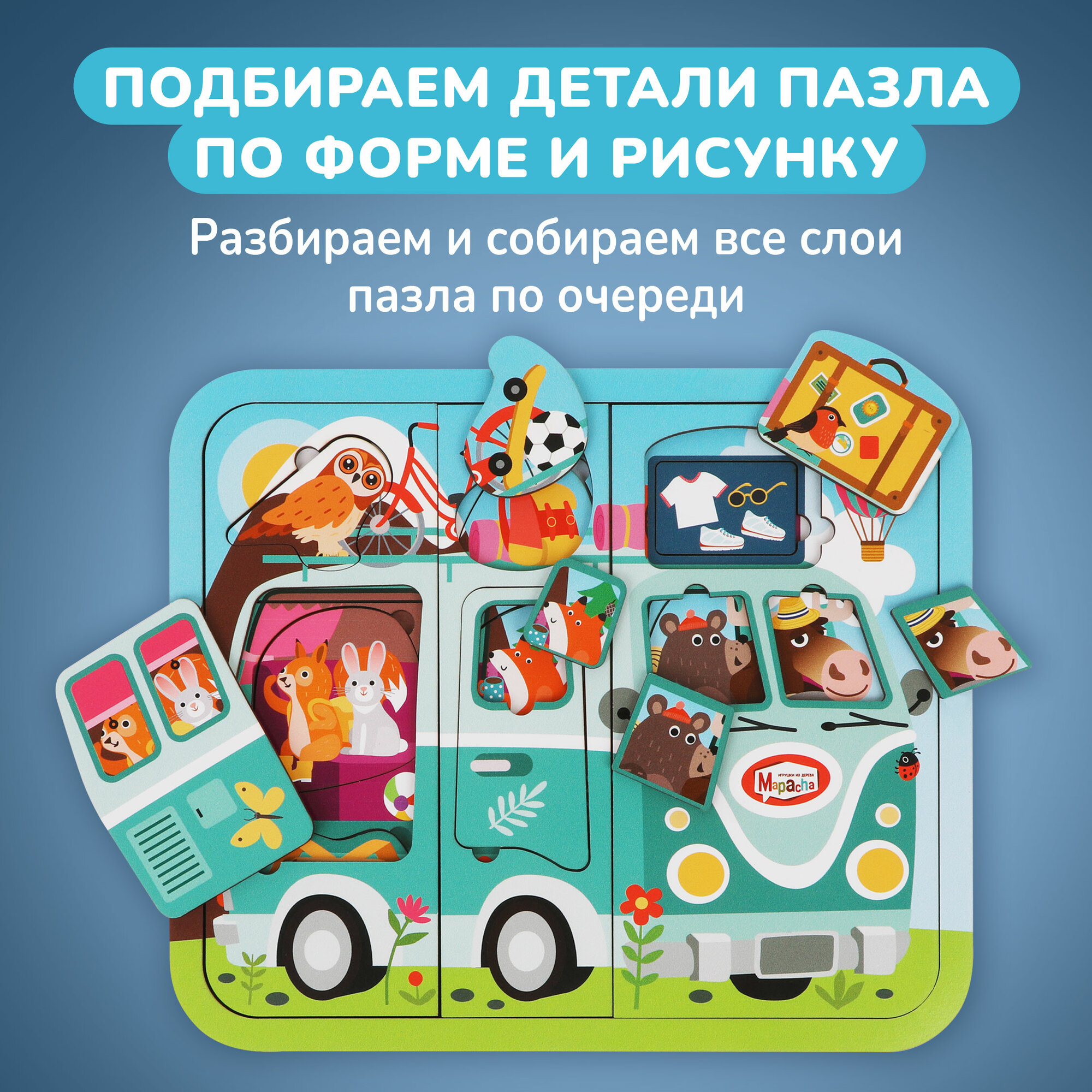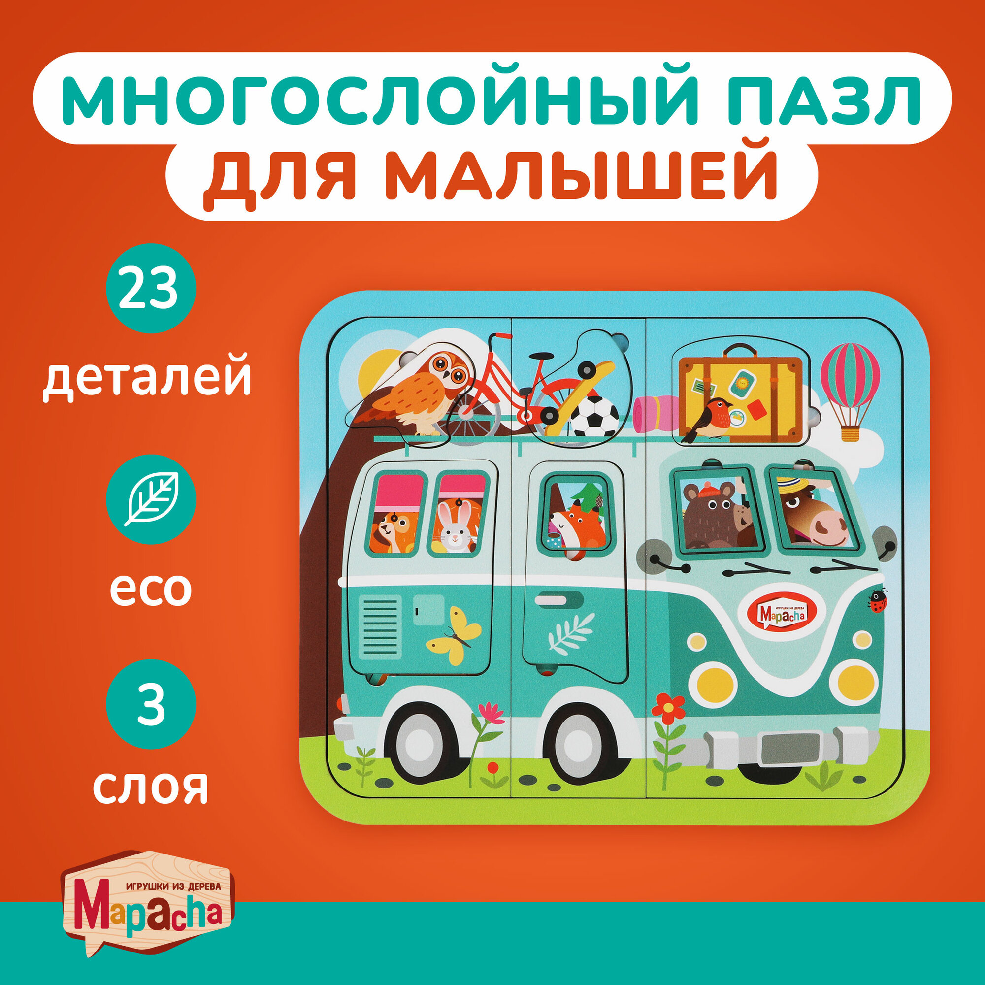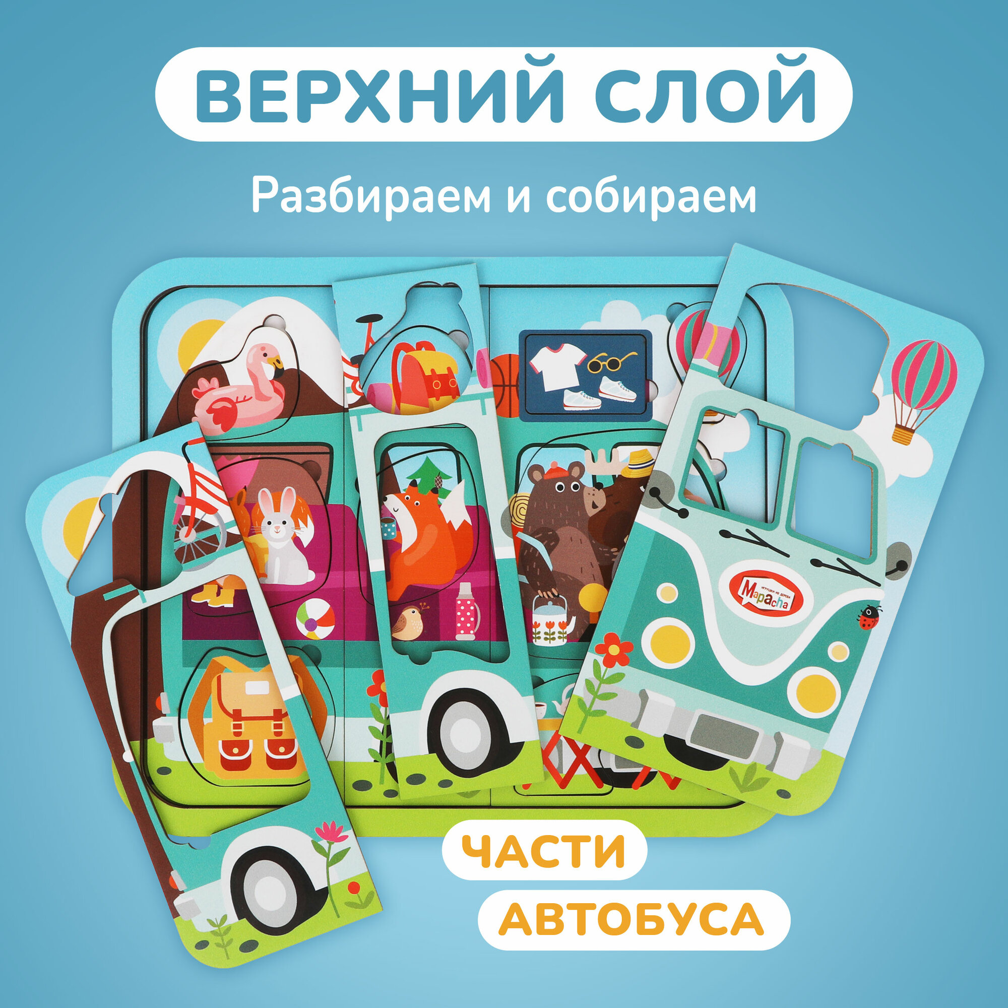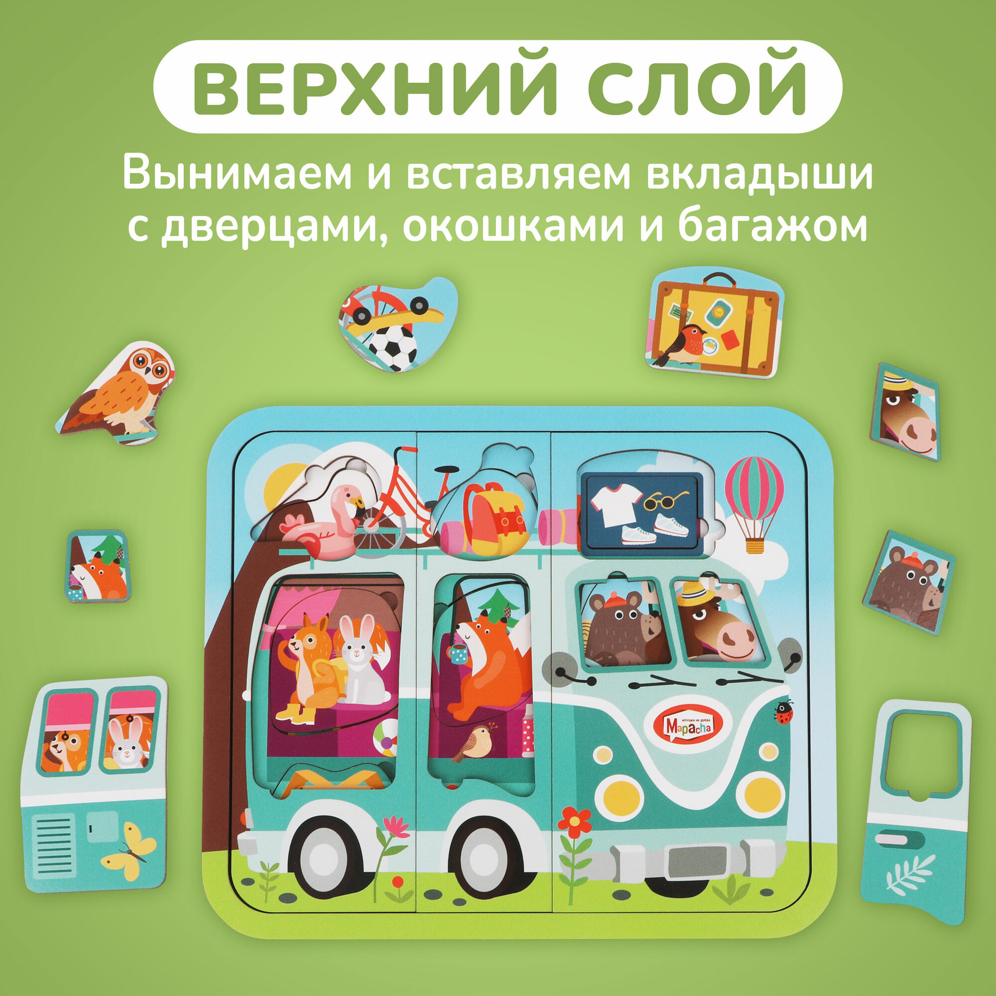 Деревянный пазл Mapacha "Путешествие на автобусе", многослойный, 23 элемента интересное: