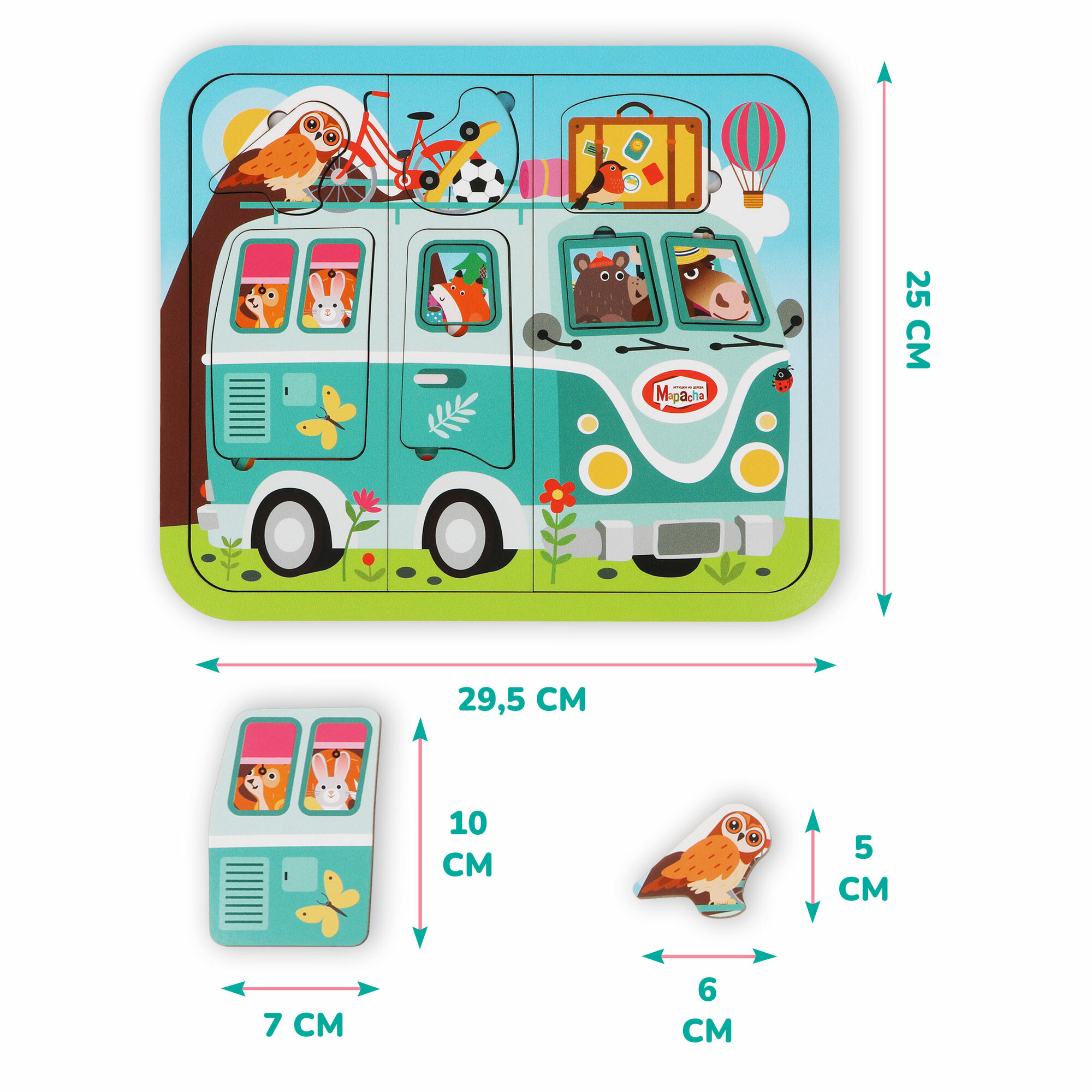 Купить Деревянный пазл Mapacha "Путешествие на автобусе", многослойный, 23 элемента