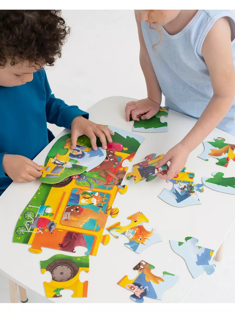 Пазлы для малышей развивающие Животные на автобусе интересное: