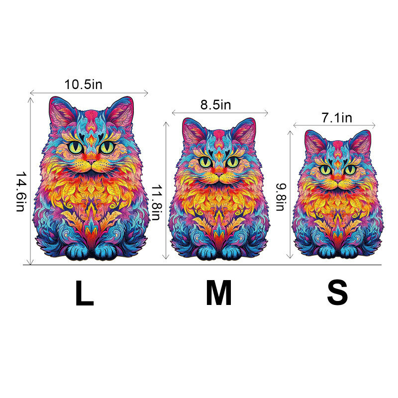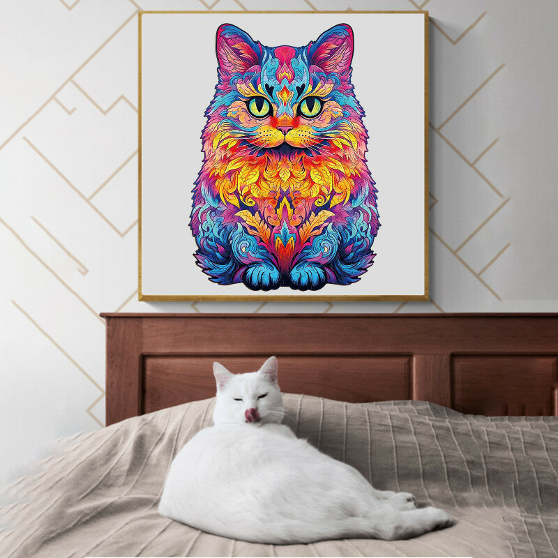 Купить Деревянный 3D пазл Woodbests Радужный кот S / 18 x 25 см / 100 деталей