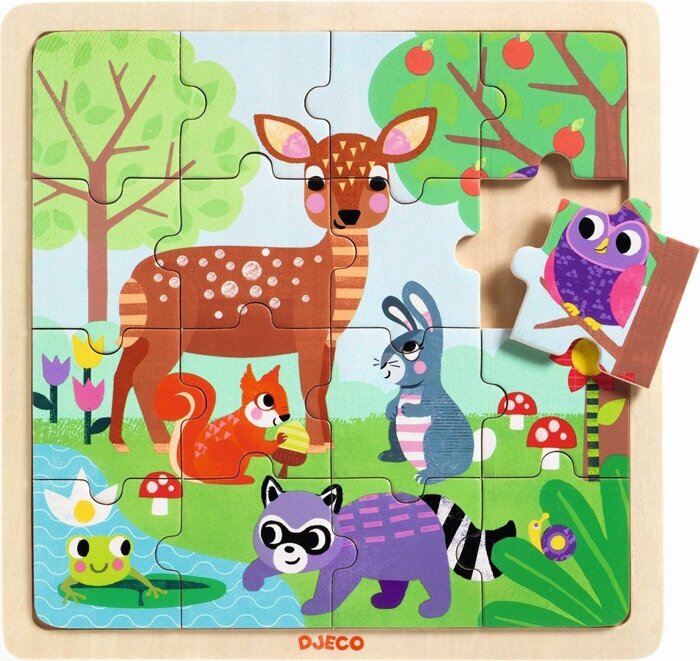 Купить Деревянный пазл Djeco «Лето в лесу», 16 элементов, 25 см x 25 см