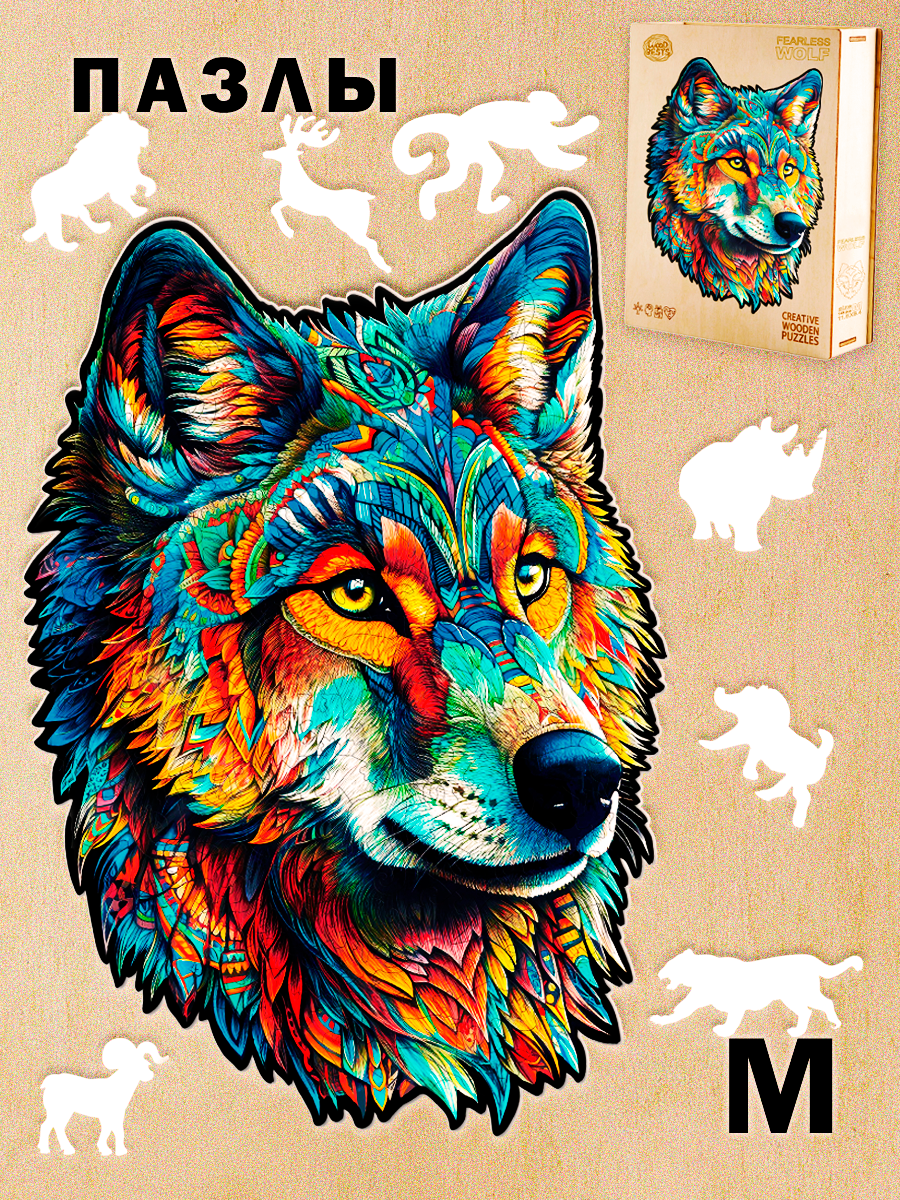 Деревянный 3D пазл Woodbests 6121-WP Бесстрашный Волк, размер M интересное: