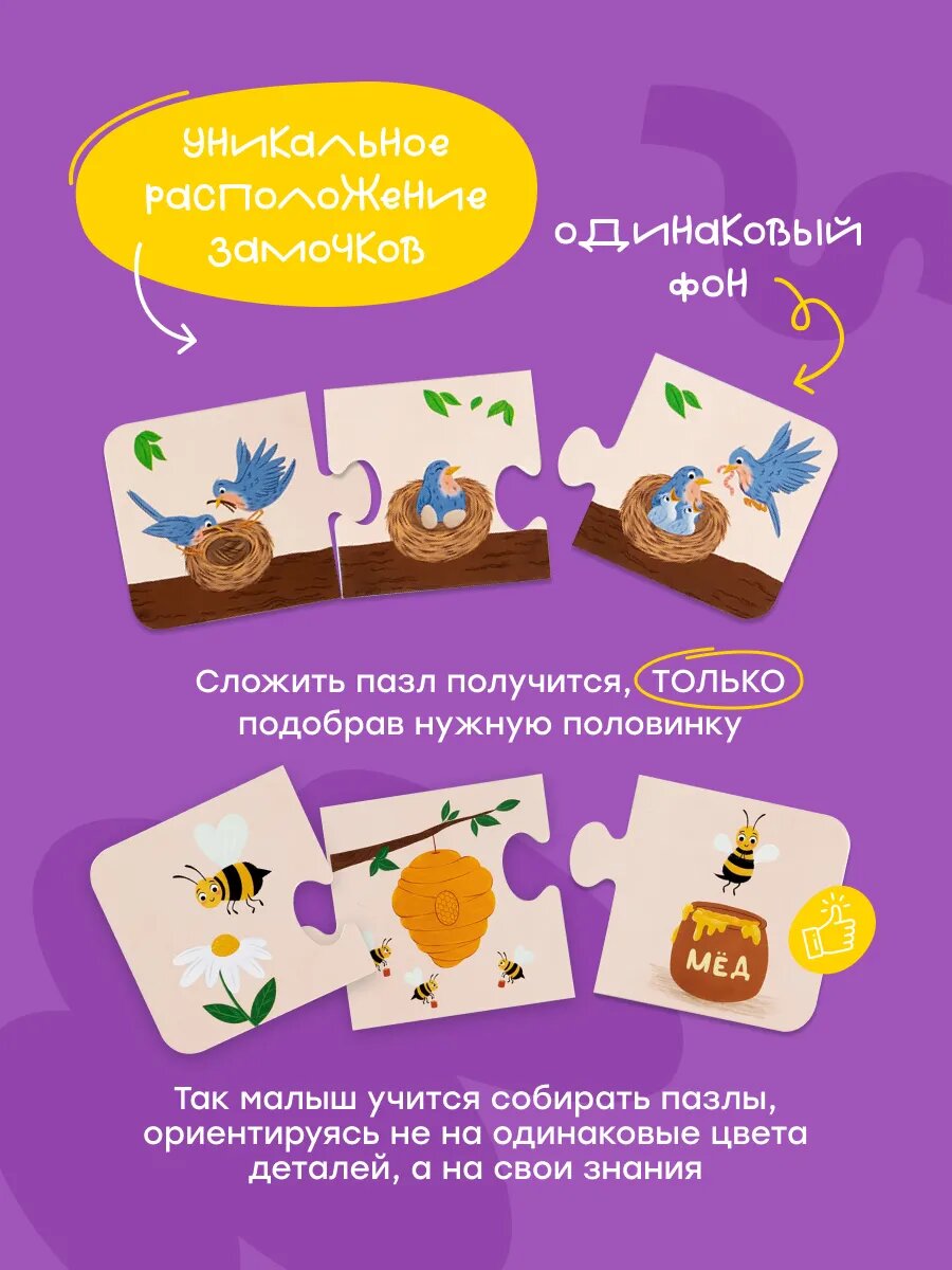 Пазлы Половинки для малышей развивающие "Кто что ест"