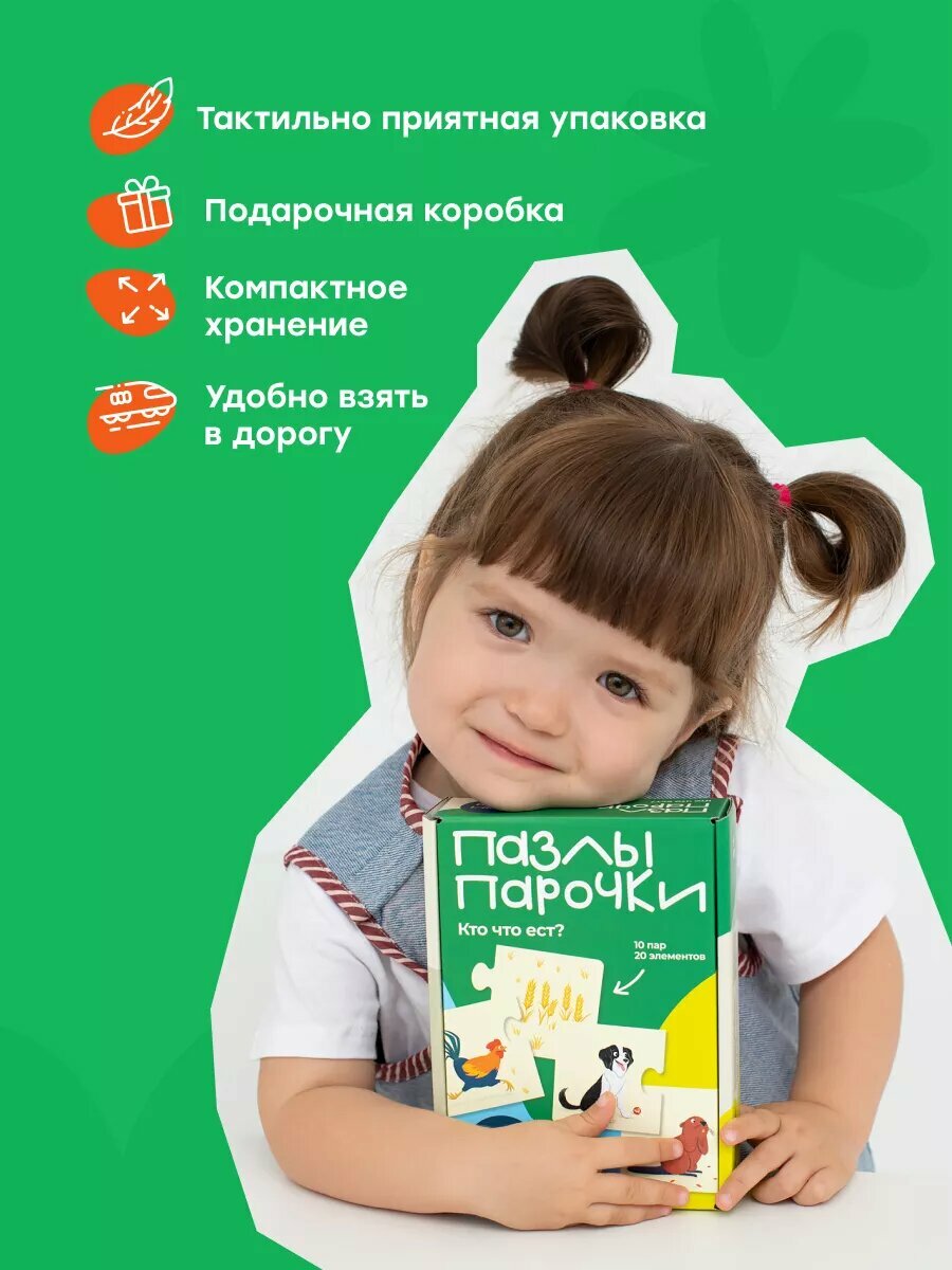 Пазлы Половинки для малышей развивающие "Кто что ест" интересное: