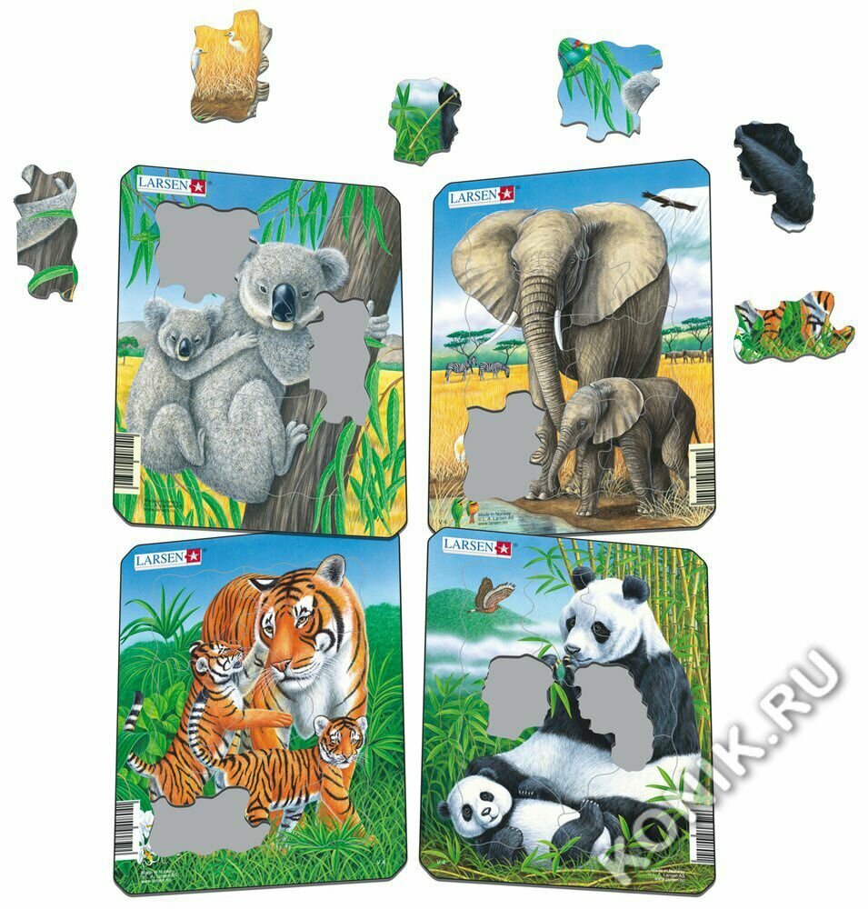 Набор детских пазлов Larsen "Коала, слон, тигр, панда" (набор, 4 шт.) интересное: