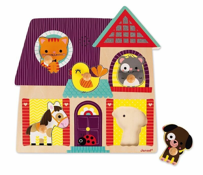 Купить Деревянный музыкальный пазл-вкладыш Janod Мои друзья; 5 элементов