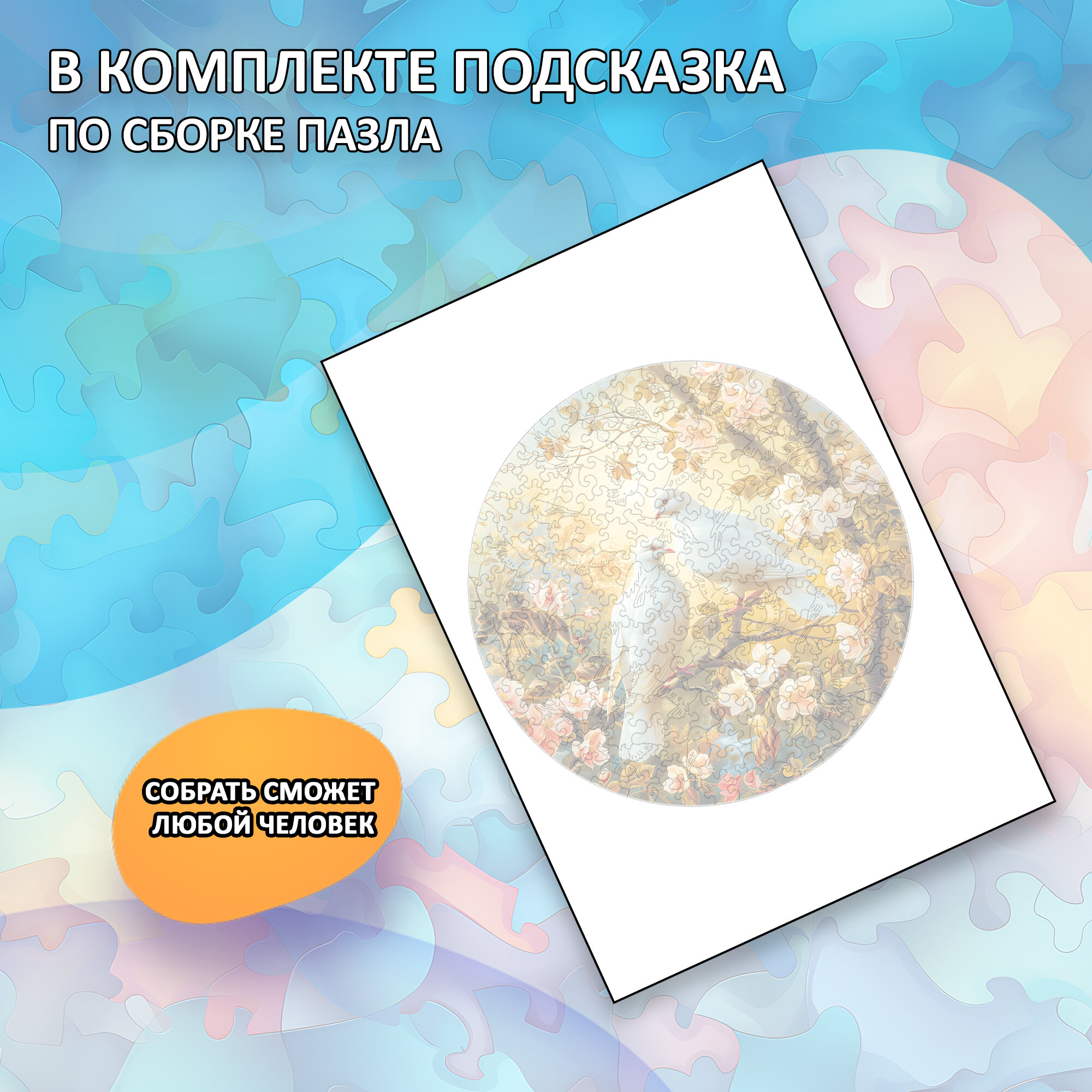 Деревянный пазл "Голуби" коллекции "Мир птиц" / 30х30см, 223 детали / Подарок для взрослых и детей интересное: