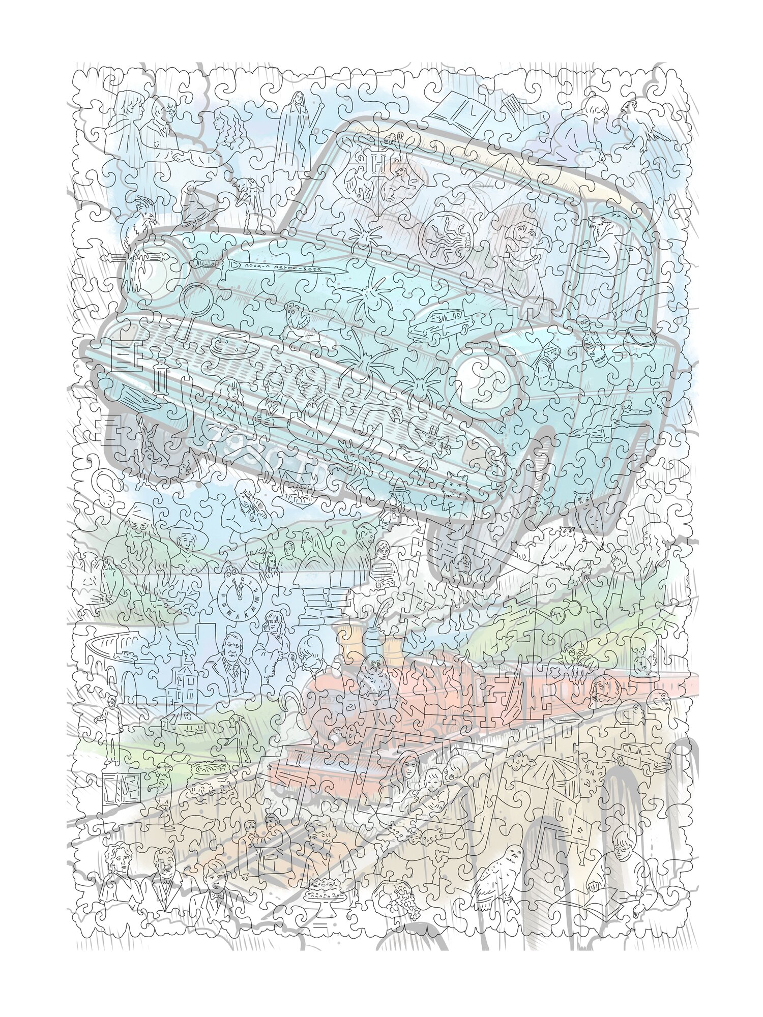 Набор деревянных пазлов "Гарри Поттер", 7 шт, 3500 деталей в коробке-чемодане