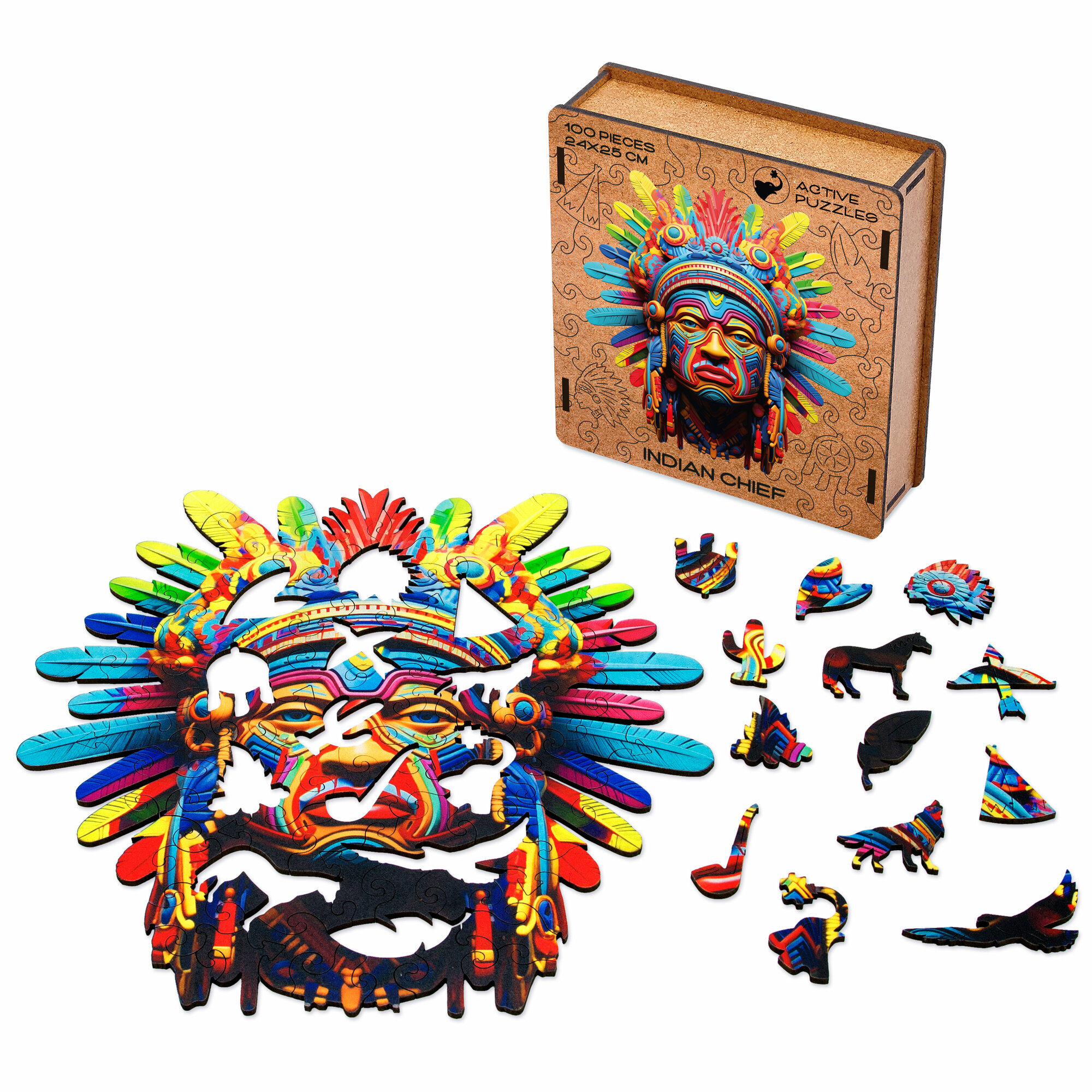 Купить Деревянные пазлы для детей и взрослых/Индейский вождь/подарочный набор/головоломка/настольная игра