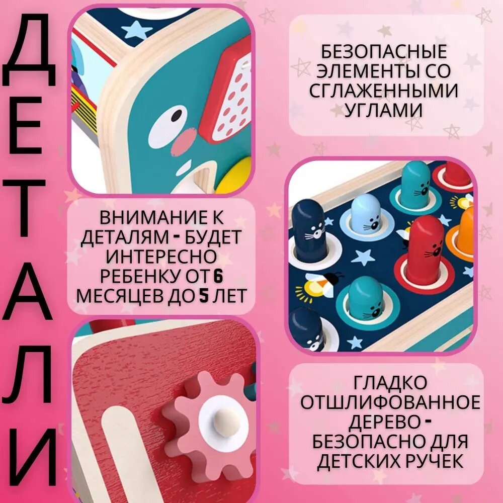 Бизиборд-каталка-стучалка-лабиринт для детей / Подарок для ребенка от 0 до 3 лет интересное: