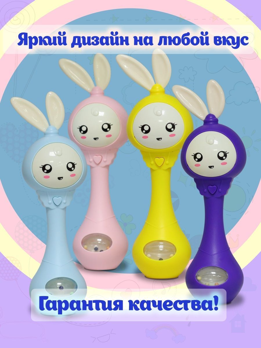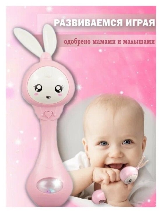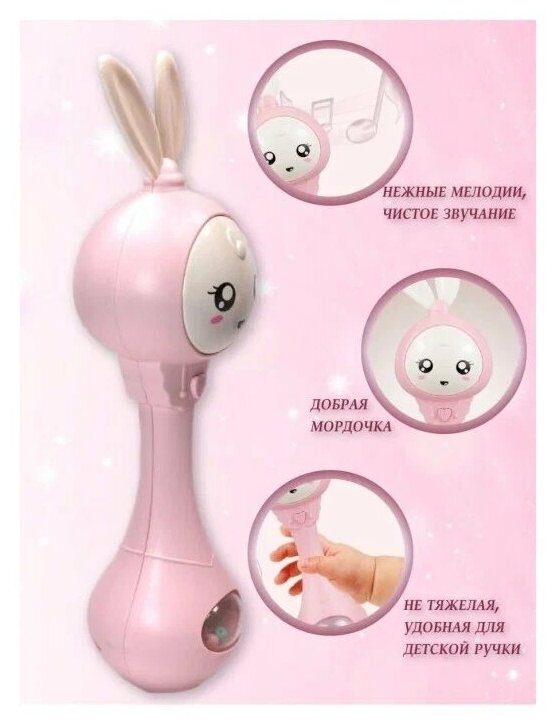 Музыкальная интерактивная развивающая игрушка-погремушка Умный малыш зайчик, розовый,12 песен интересное:
