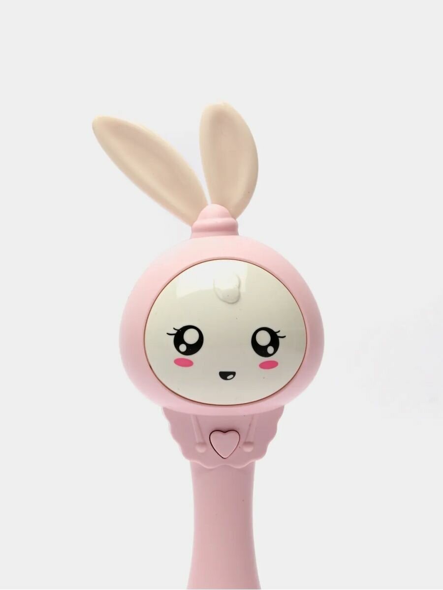 Купить Музыкальная интерактивная развивающая игрушка-погремушка Умный малыш зайчик, розовый,12 песен