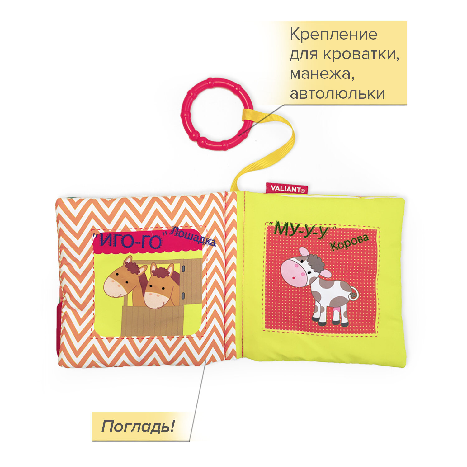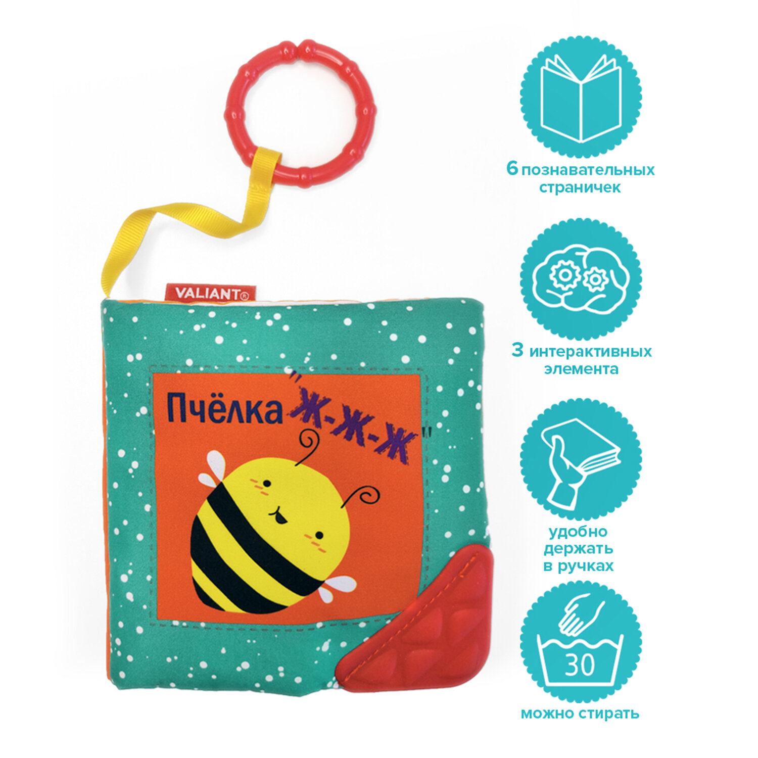 Книжка-игрушка VALIANT "Пчелка" Ж-Ж-Ж", от 0 до 6 месяцев, прорезыватель, 13x13 см интересное: