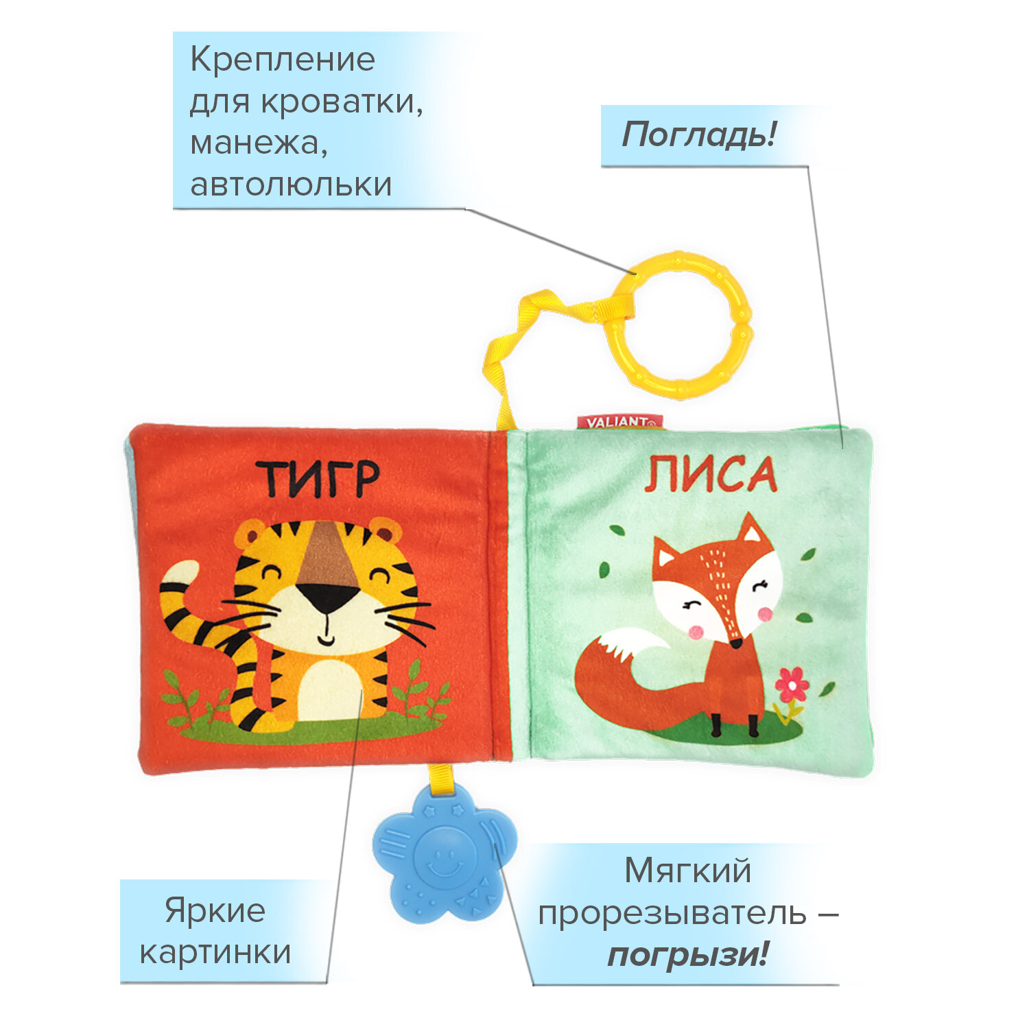 Книжка-игрушка VALIANT "Пчелка" Ж-Ж-Ж", от 0 до 6 месяцев, прорезыватель, 13x13 см