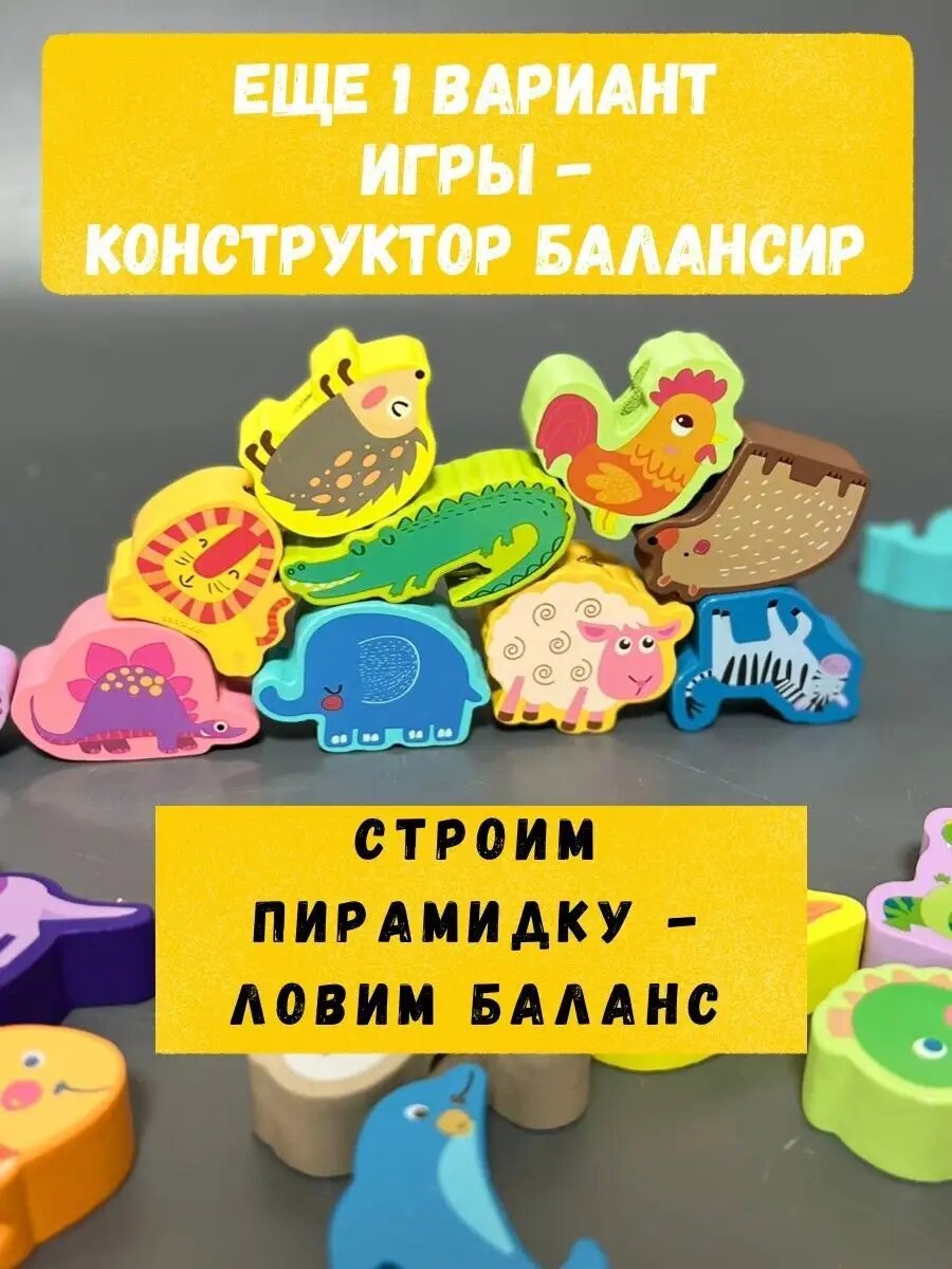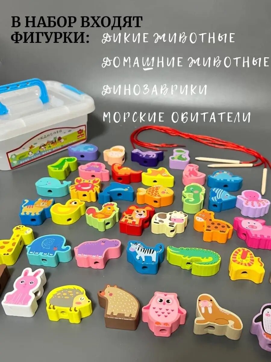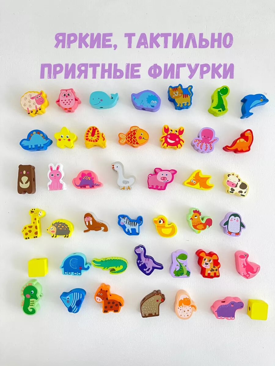 Развивающая шнуровка LisenokSmart, дерево/пластик/текстиль, 42 предмета, контейнер, от 3 лет, для детей и малышей интересное: