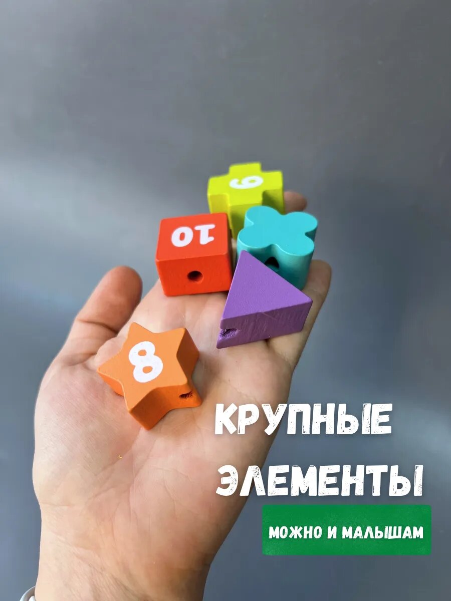 Развивающая шнуровка LisenokSmart, дерево/пластик/текстиль, 42 предмета, контейнер, от 3 лет, для детей и малышей