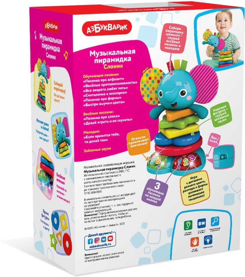 Купить Интерактивная развивающая игрушка Азбукварик Музыкальная пирамидка Слоник