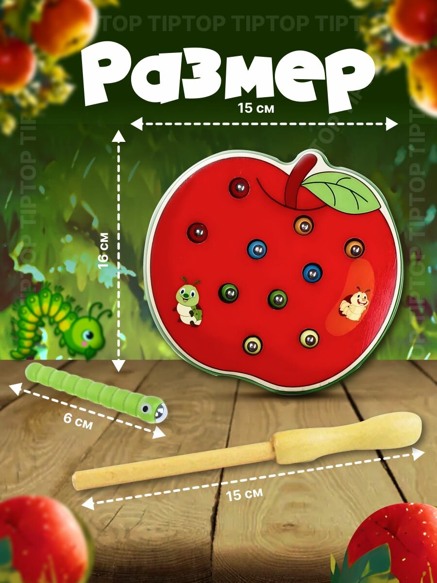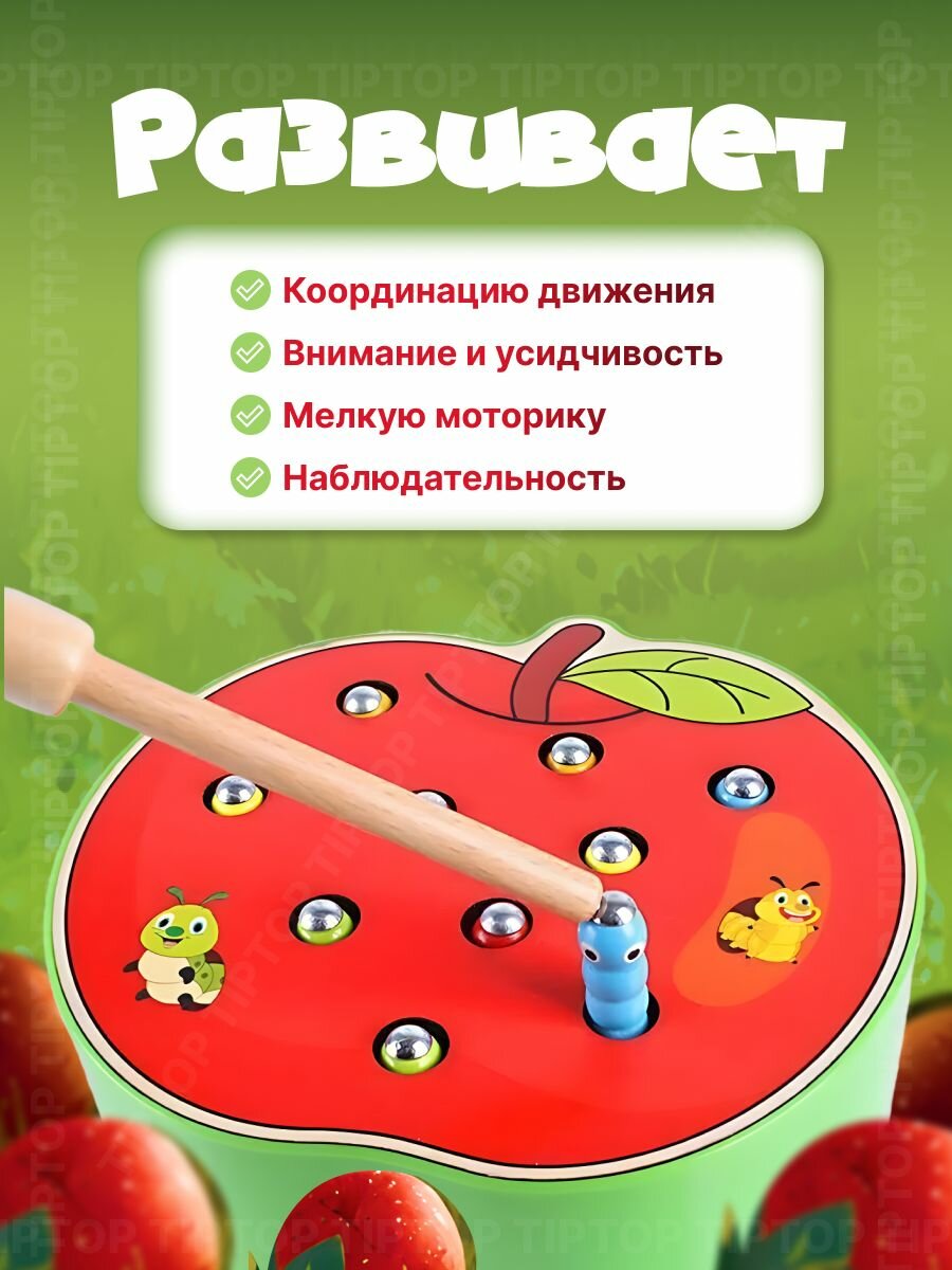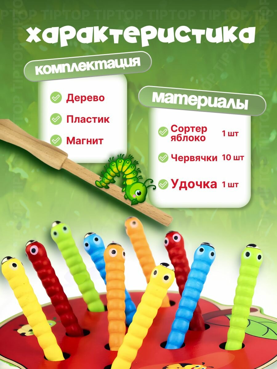 TipTop Сортер для малышей деревянный Магнитная рыбалка Червячки на магнитах интересное: