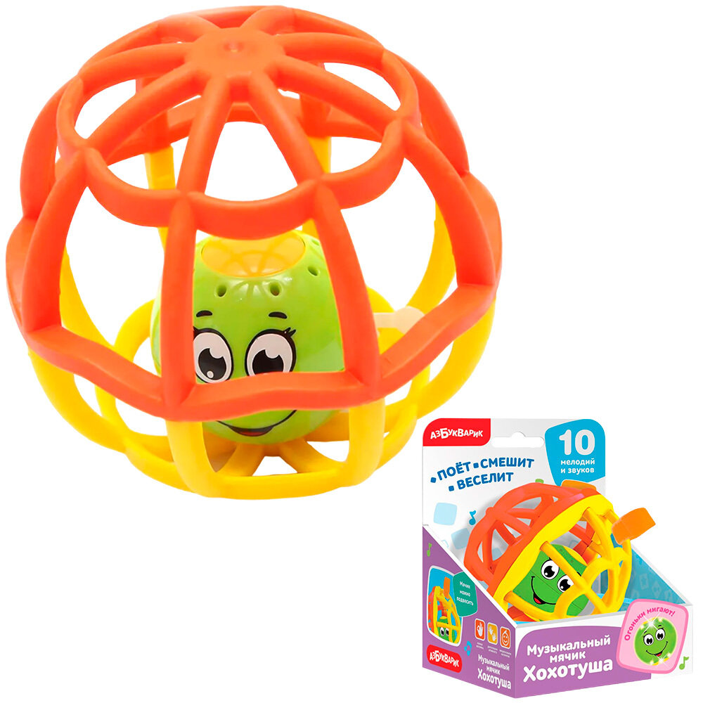 Купить Игрушка музыкальная Азбукварик "Мячик хохотуша" Оранжево-желтый