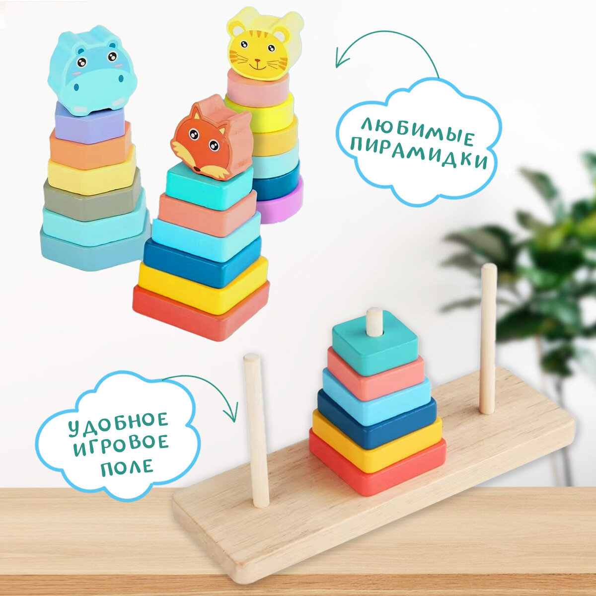 Пирамидка игрушка сортер. BONNY CAT. Развитие логики и моторики для самых маленьких. Натуральное дерево