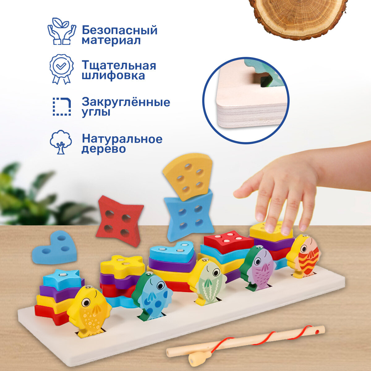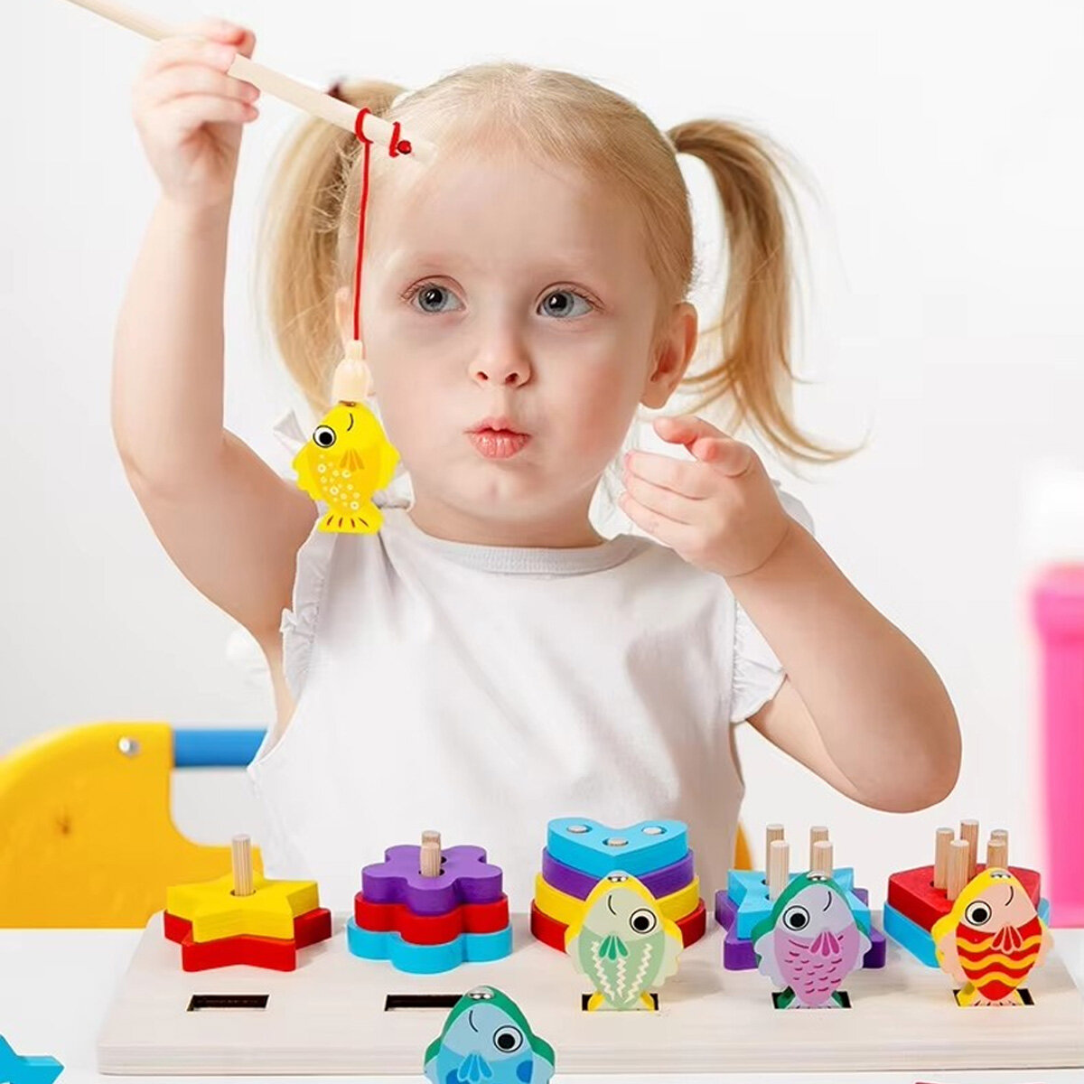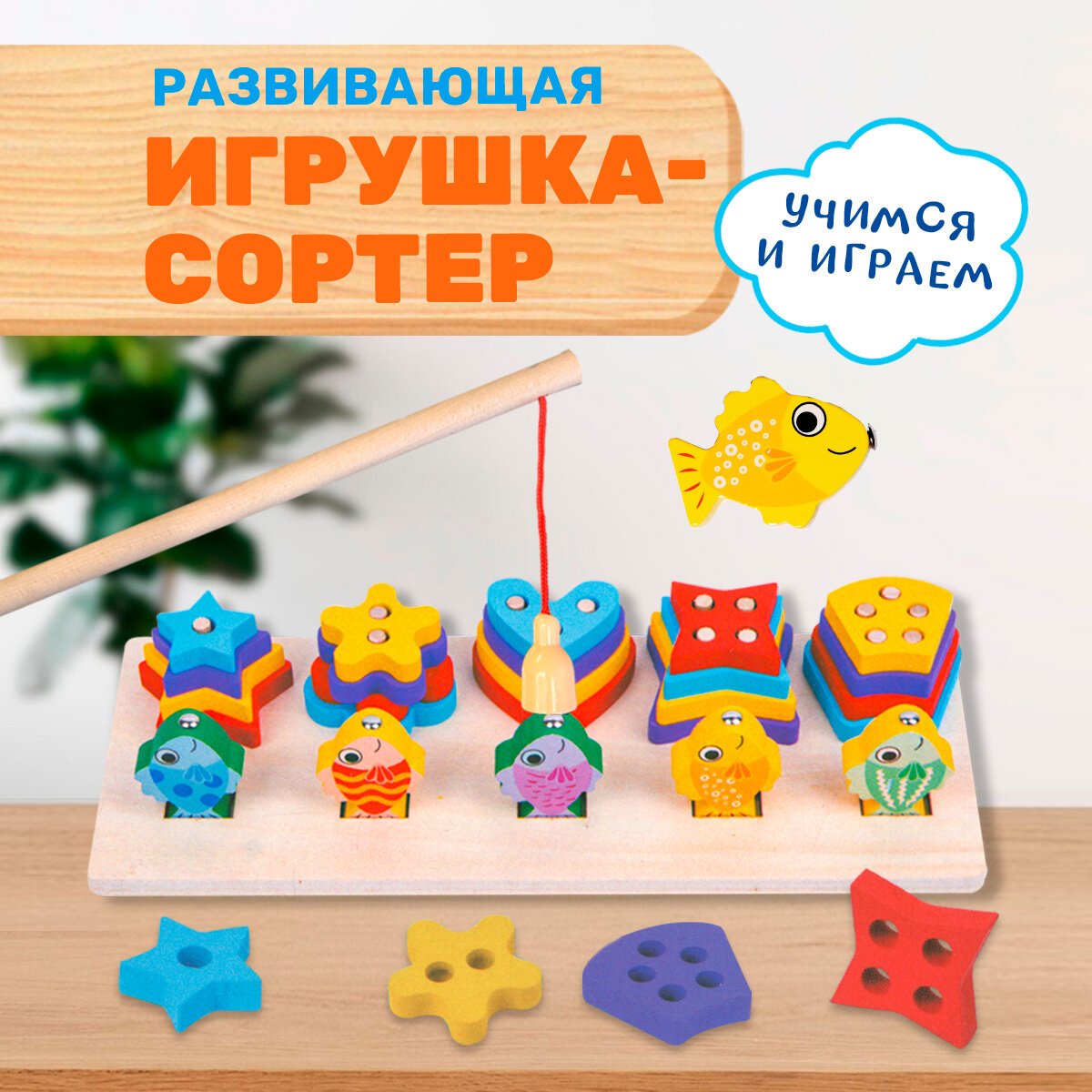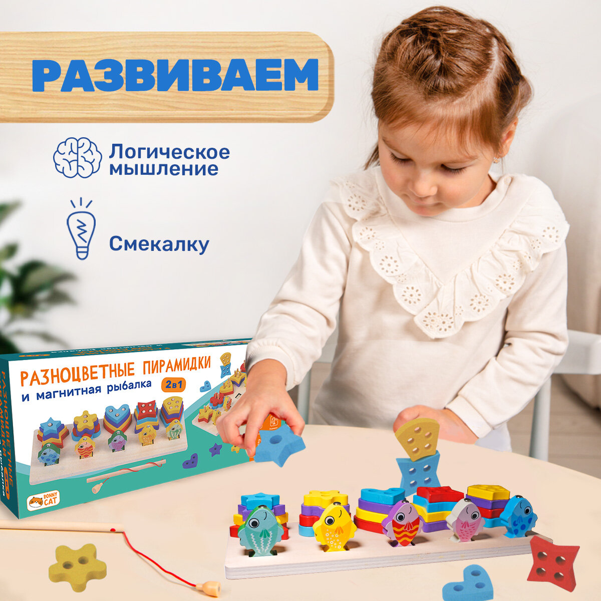 Развивающая игрушка сортер. Пирамидки и рыбалка. BONNY CAT. Разноцветные пирамидки и магнитная рыбалка. 2 в 1 интересное:
