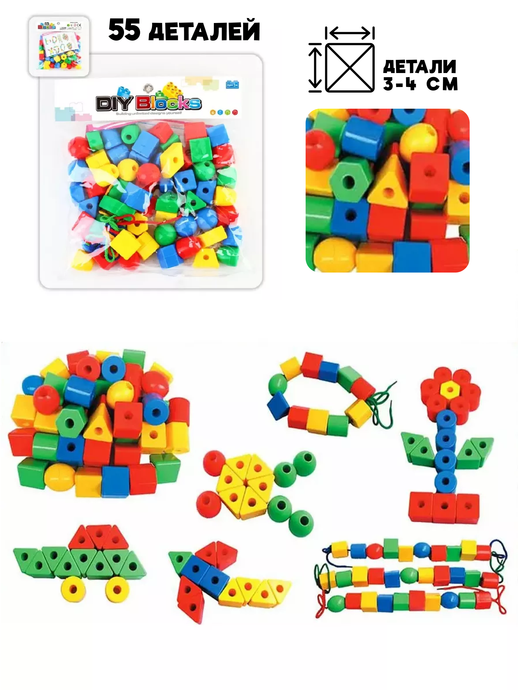 Шнуровка фигурки для детей крупная, 55 деталей размером 3-4 см, HC-070 интересное:
