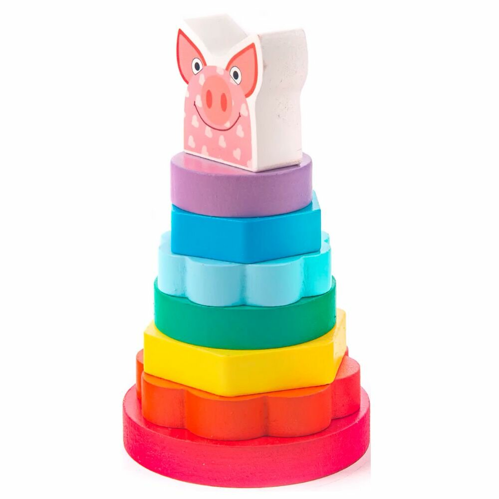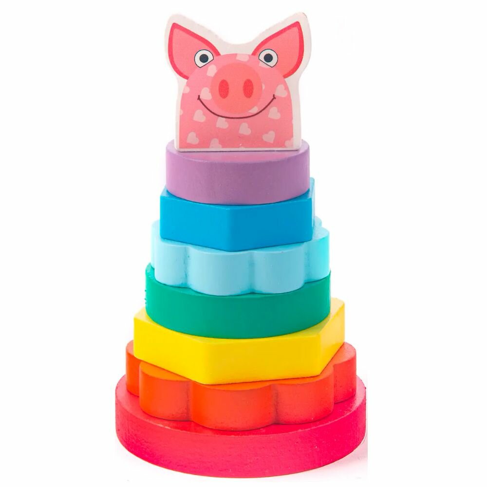 Купить Развивающая игрушка детская деревянная пирамидка Поросенок Хрю для малышей, 6 колечек