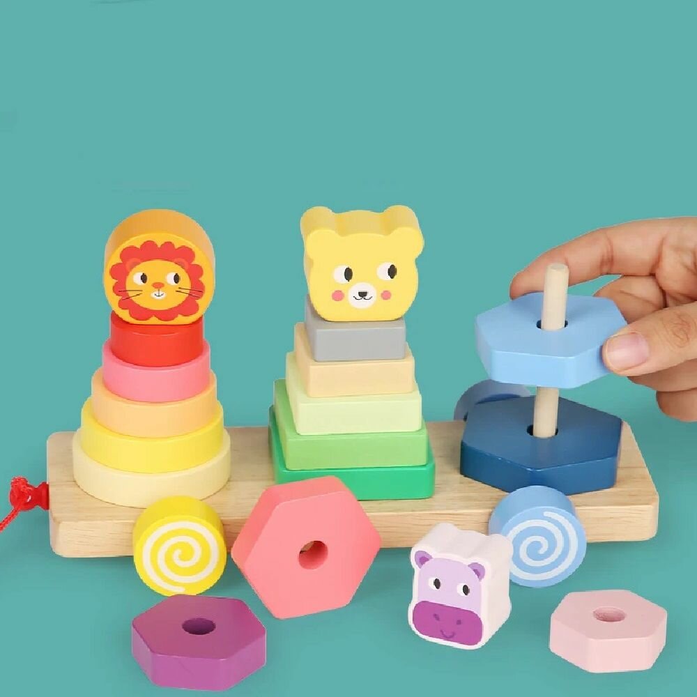 Купить Развивающая деревянная игрушка сортер пирамидка на веревочке для малышей 22,5 х 11 х 12 см, 69