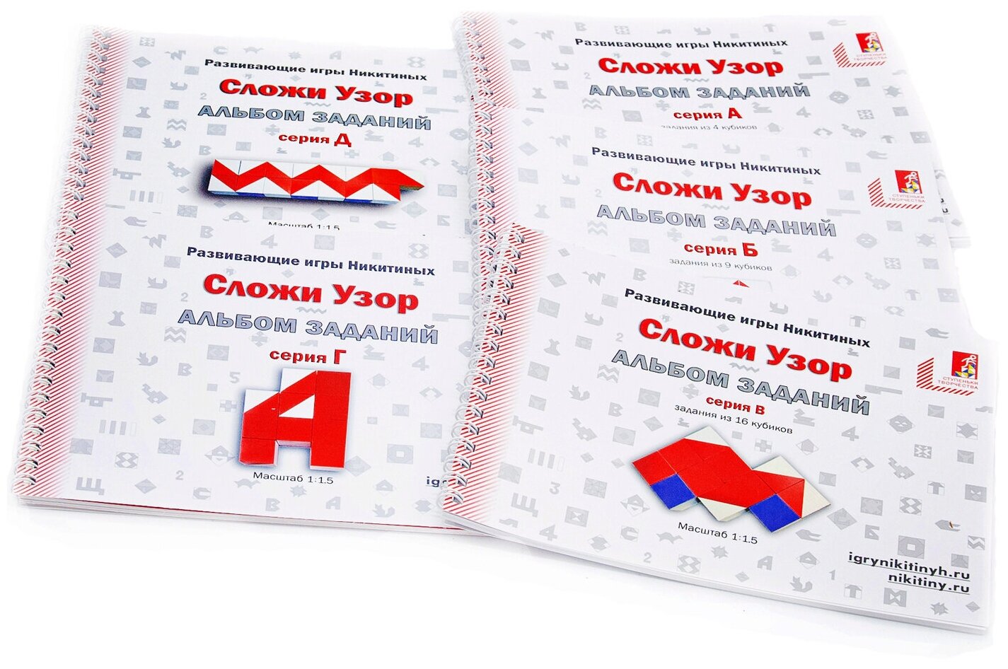 Купить Комплект альбомов к кубикам Никитина Сложи Узор из 5 альбомов с заданиями от Семьи Никитиных