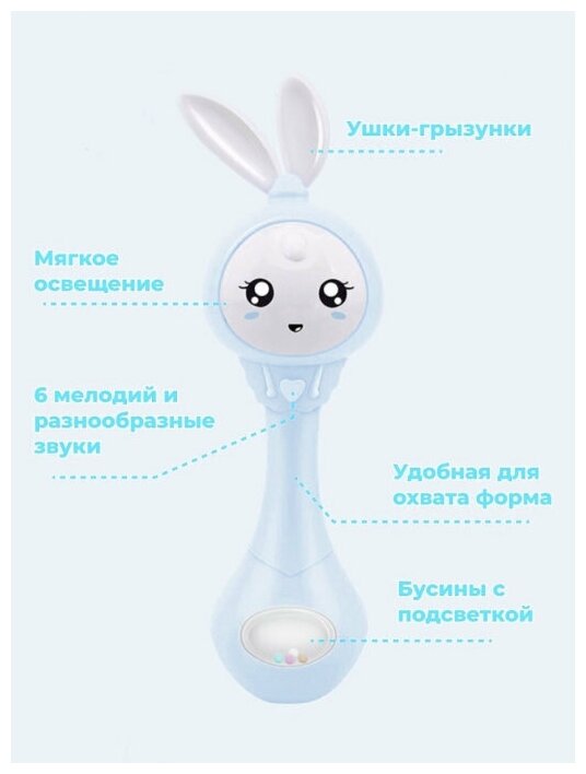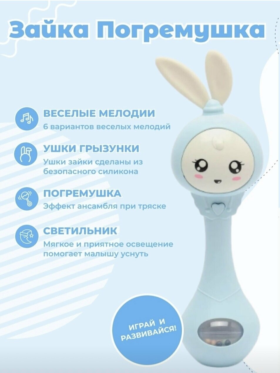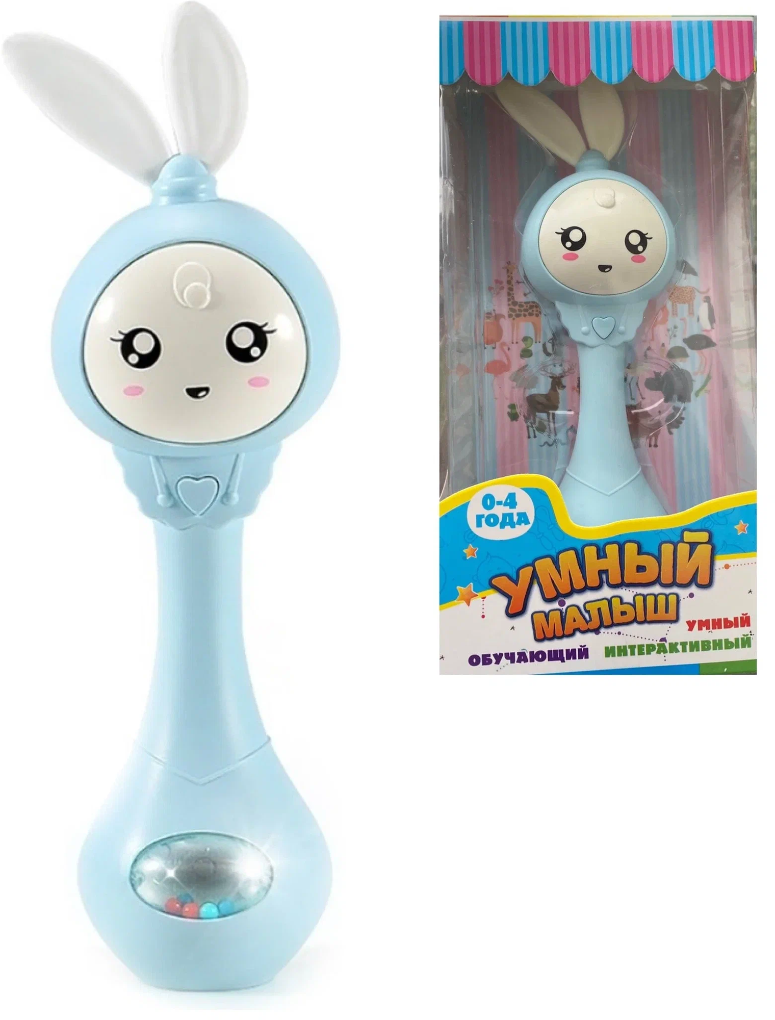 Купить Музыкальная интерактивная развивающая игрушка-погремушка Умный малыш зайчик, голубой