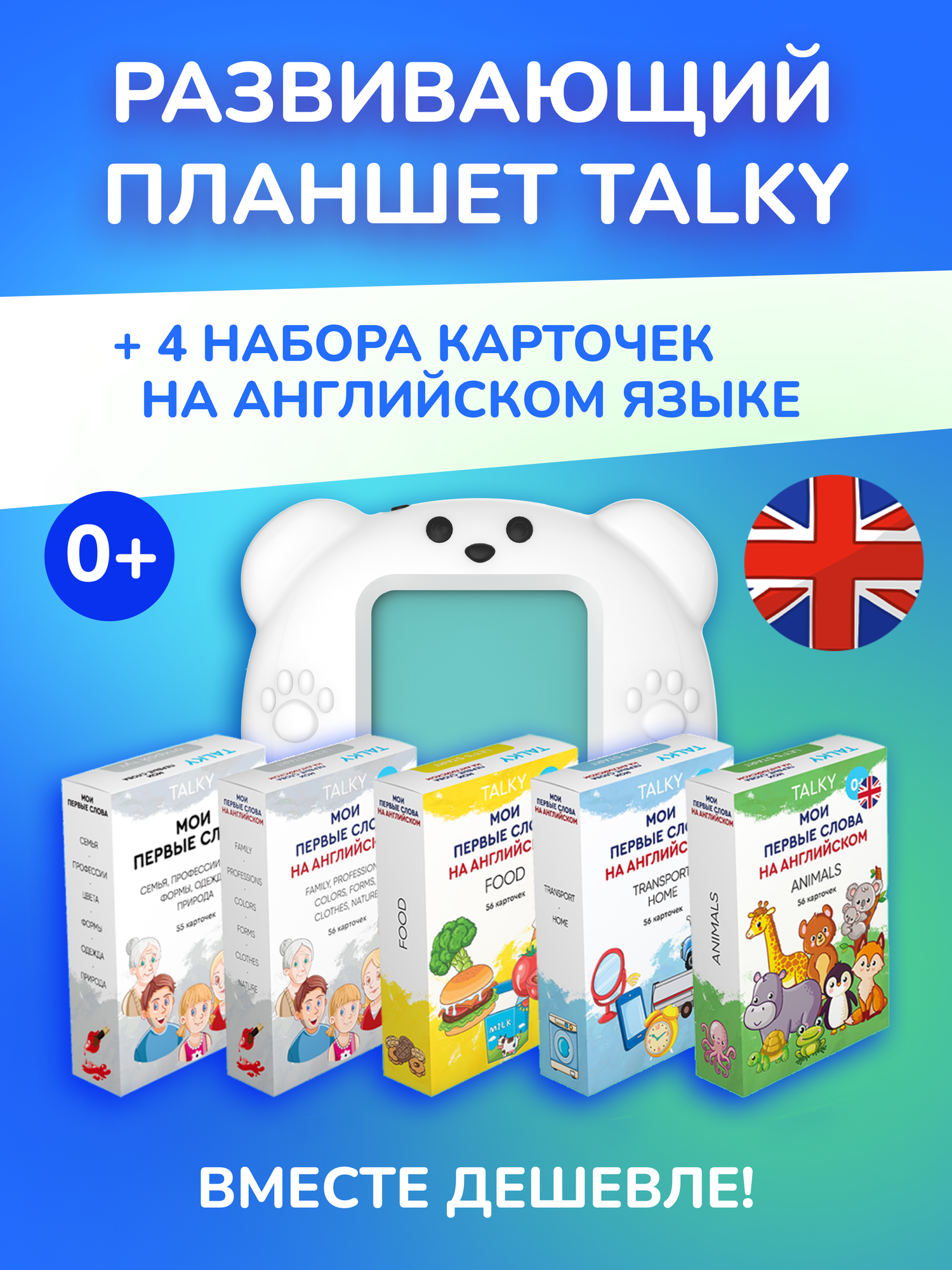 Комбо интерактивный развивающий планшет TALKY + 5 наборов карточек, LUMICUBE