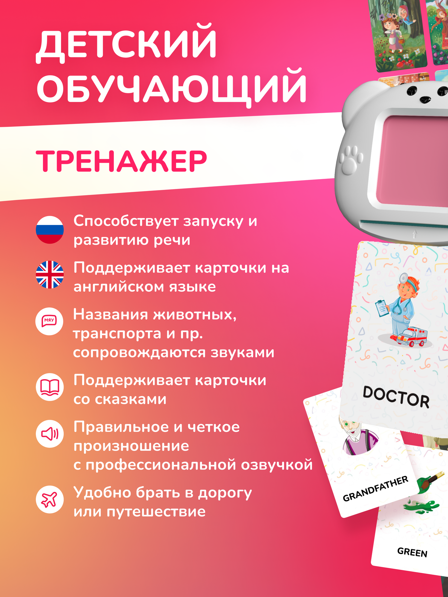 Комбо интерактивный развивающий планшет TALKY розовый + 5 наборов карточек, для девочки
