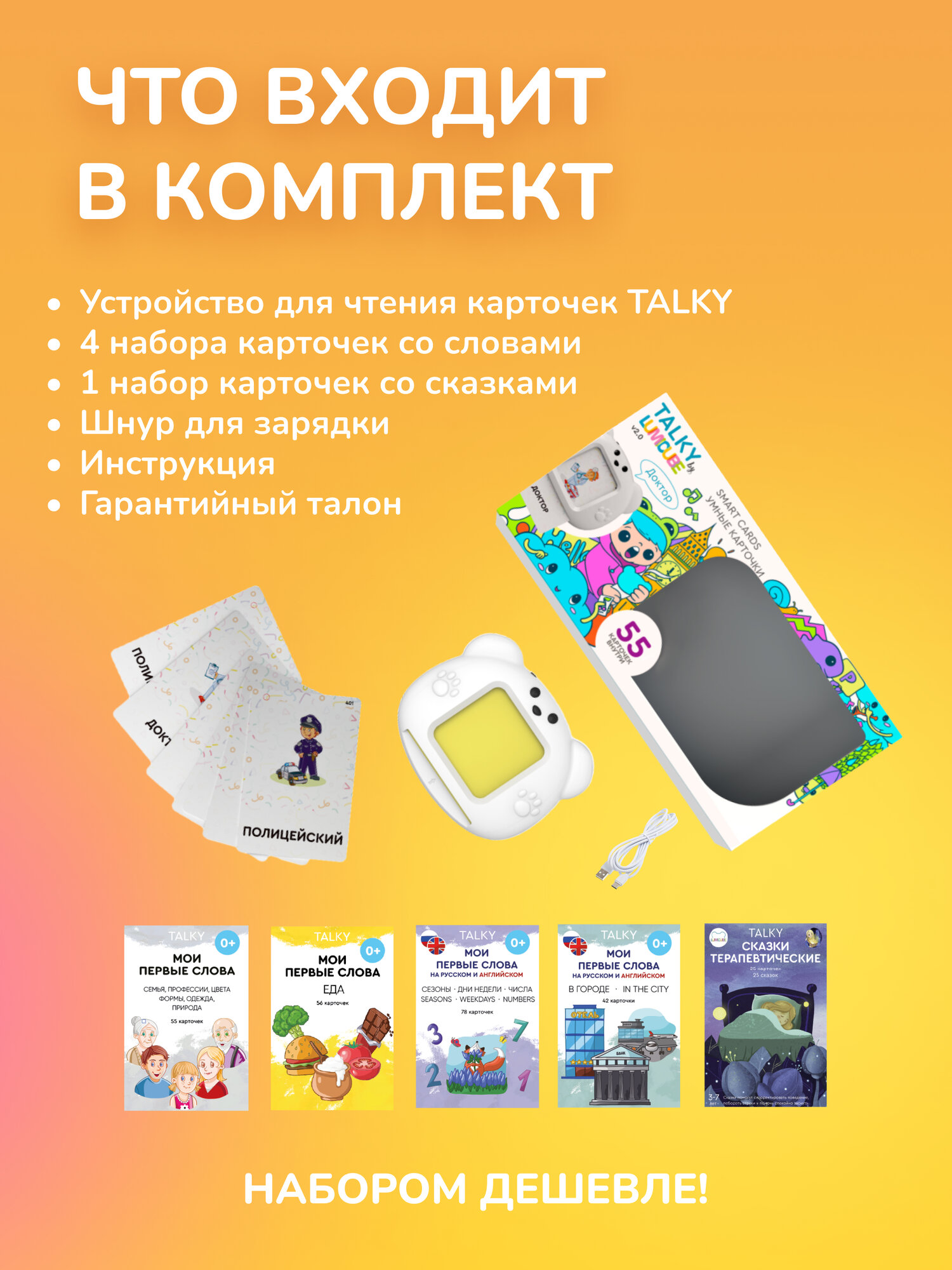 Комбо интерактивный развивающий планшет TALKY + 5 наборов карточек, LUMICUBE