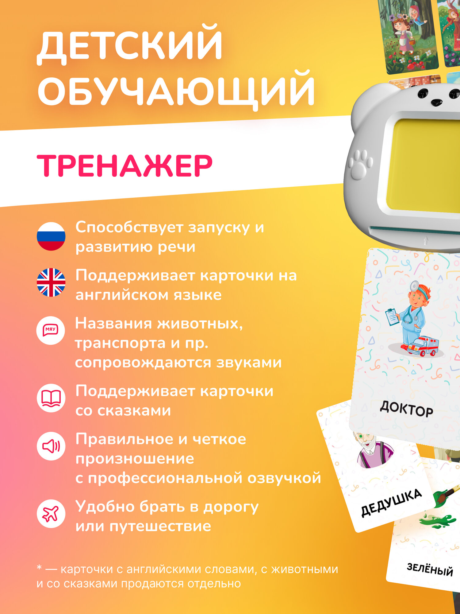 Купить Комбо интерактивный развивающий планшет TALKY желтый + 5 наборов карточек, для девочки