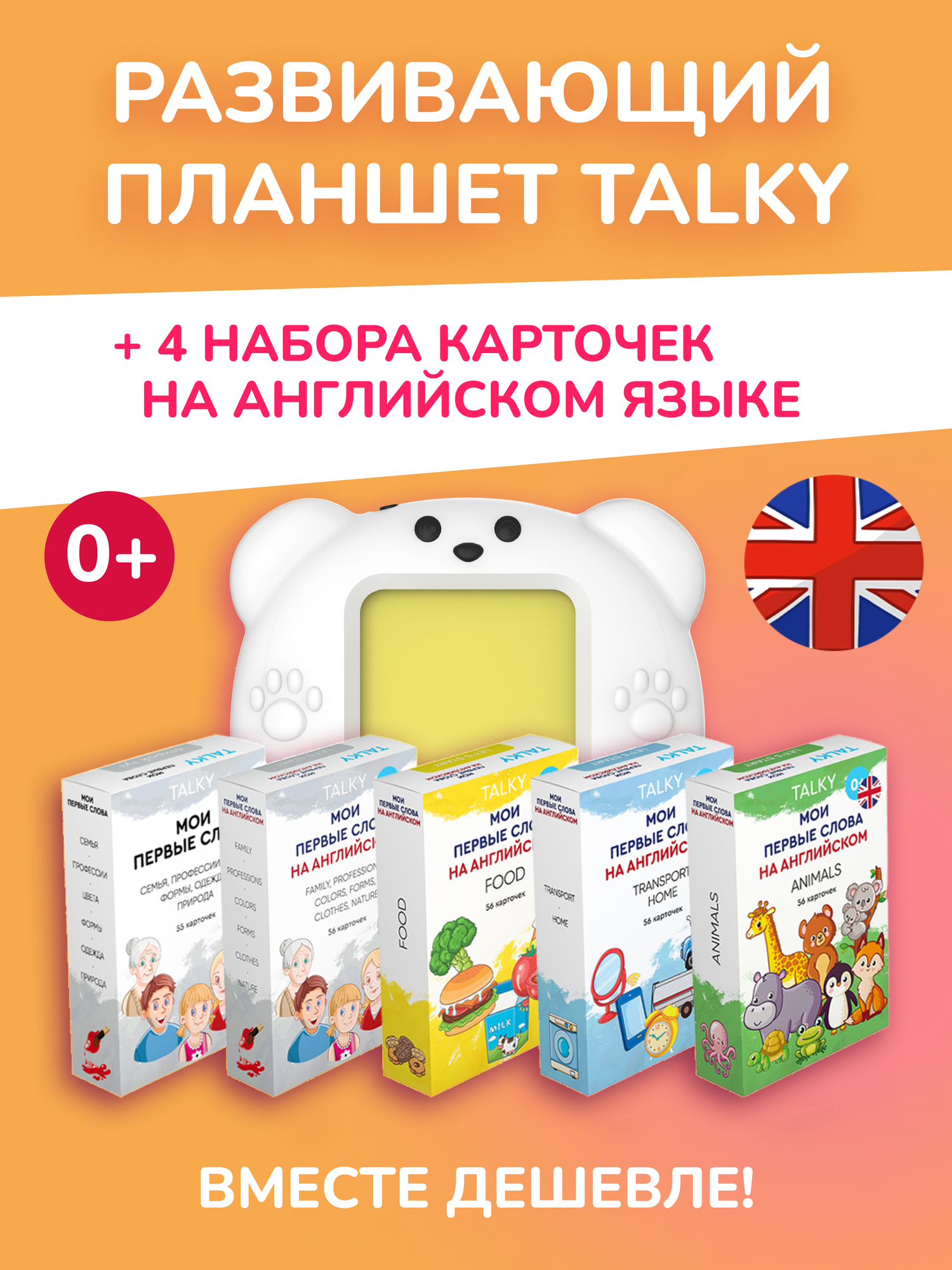 СохранитьКомбо интерактивный развивающий планшет TALKY желтый + 4 набора на английском языке интересное: