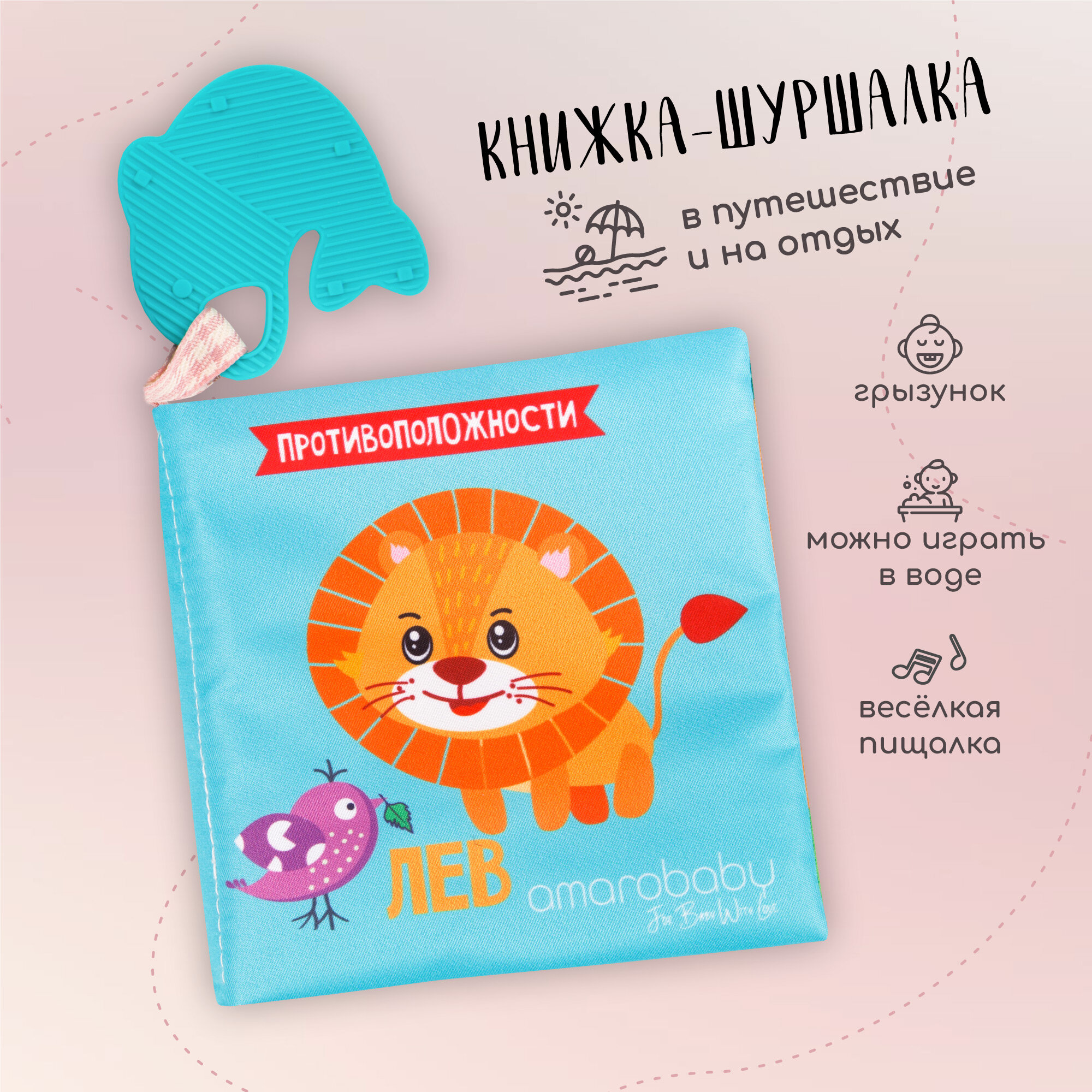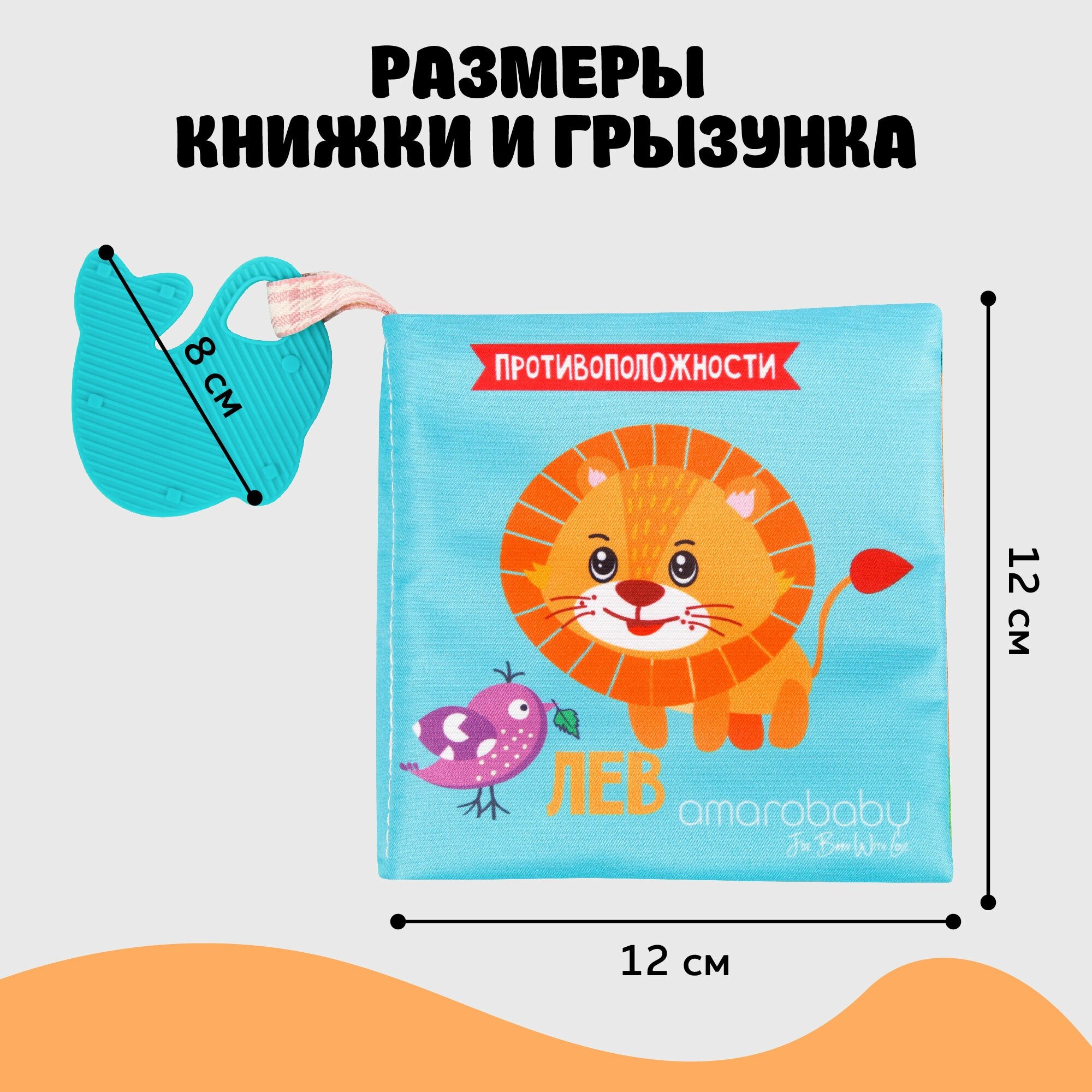 Книжка-игрушка с грызунком AMAROBABY Soft Book, Противоположности интересное: