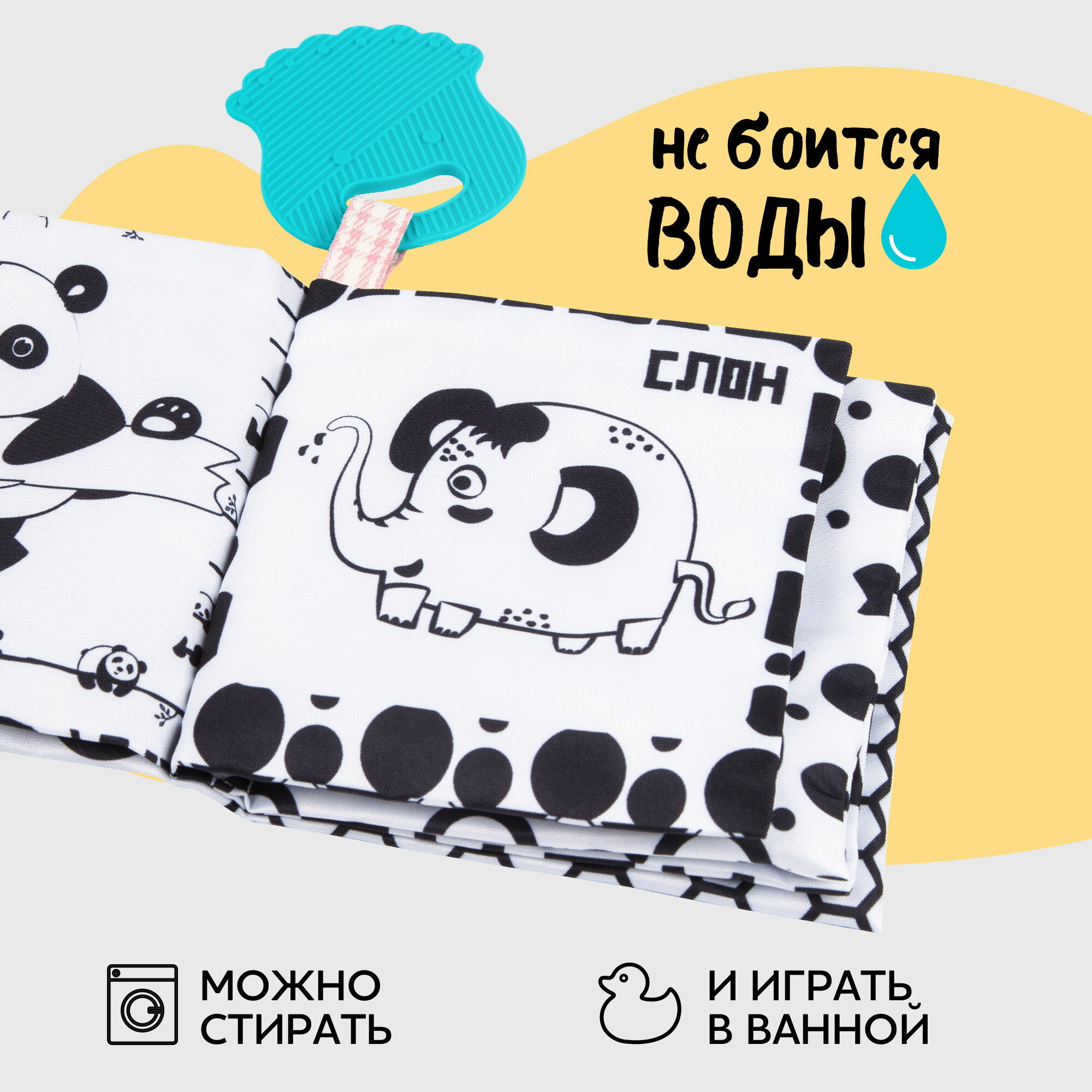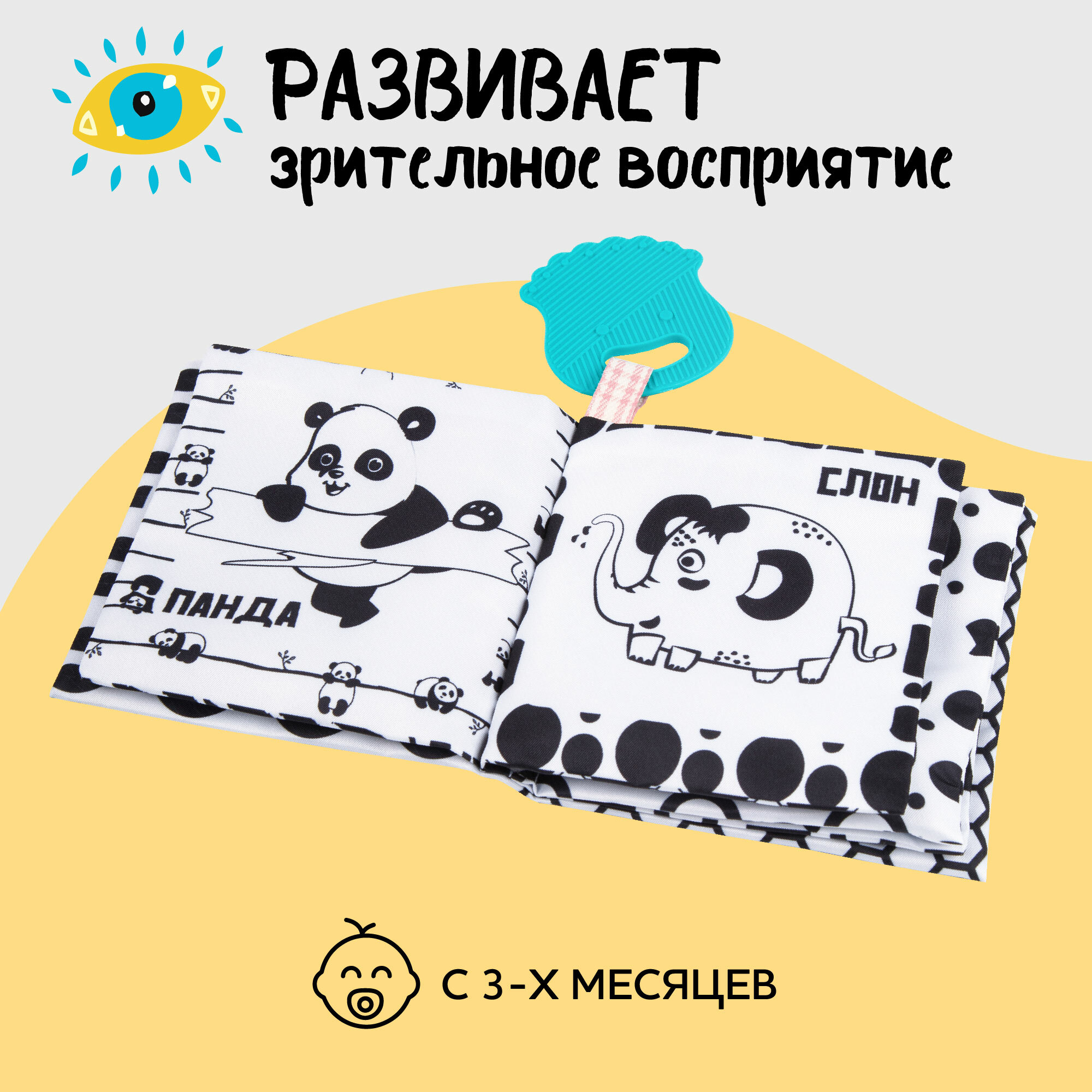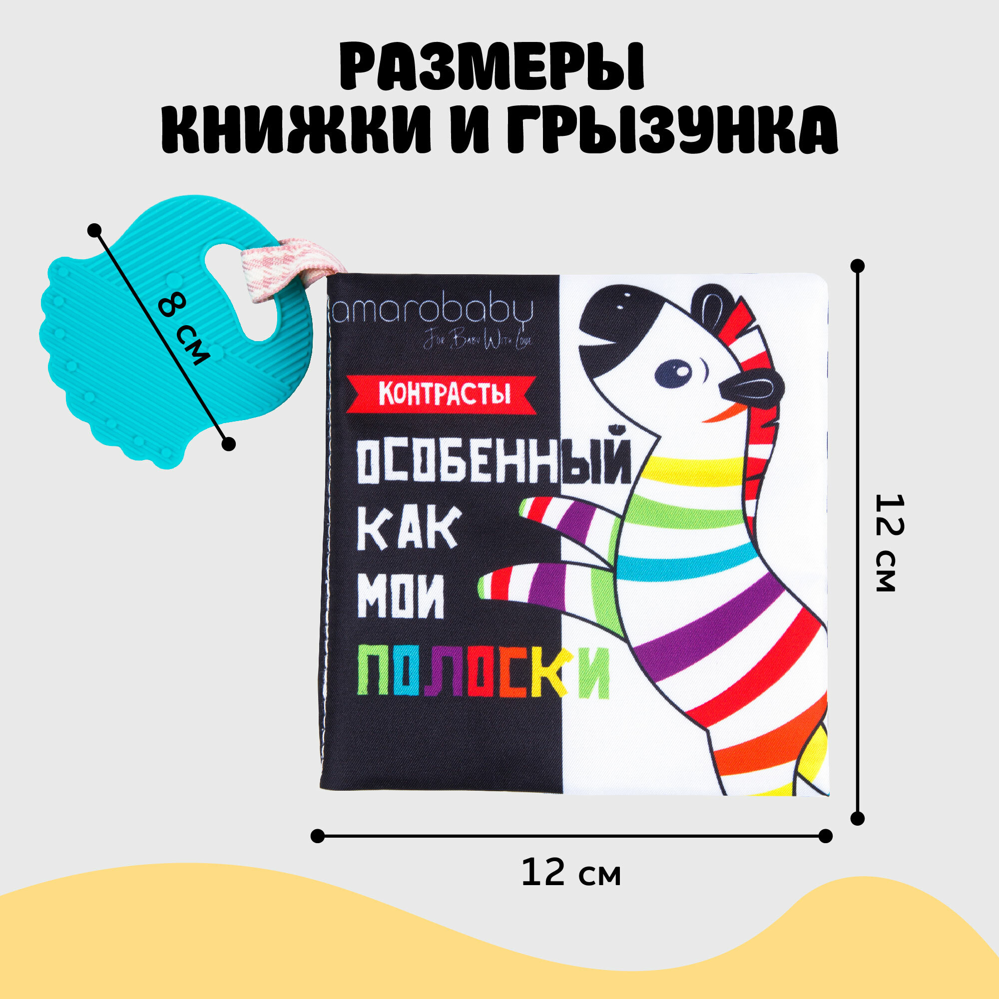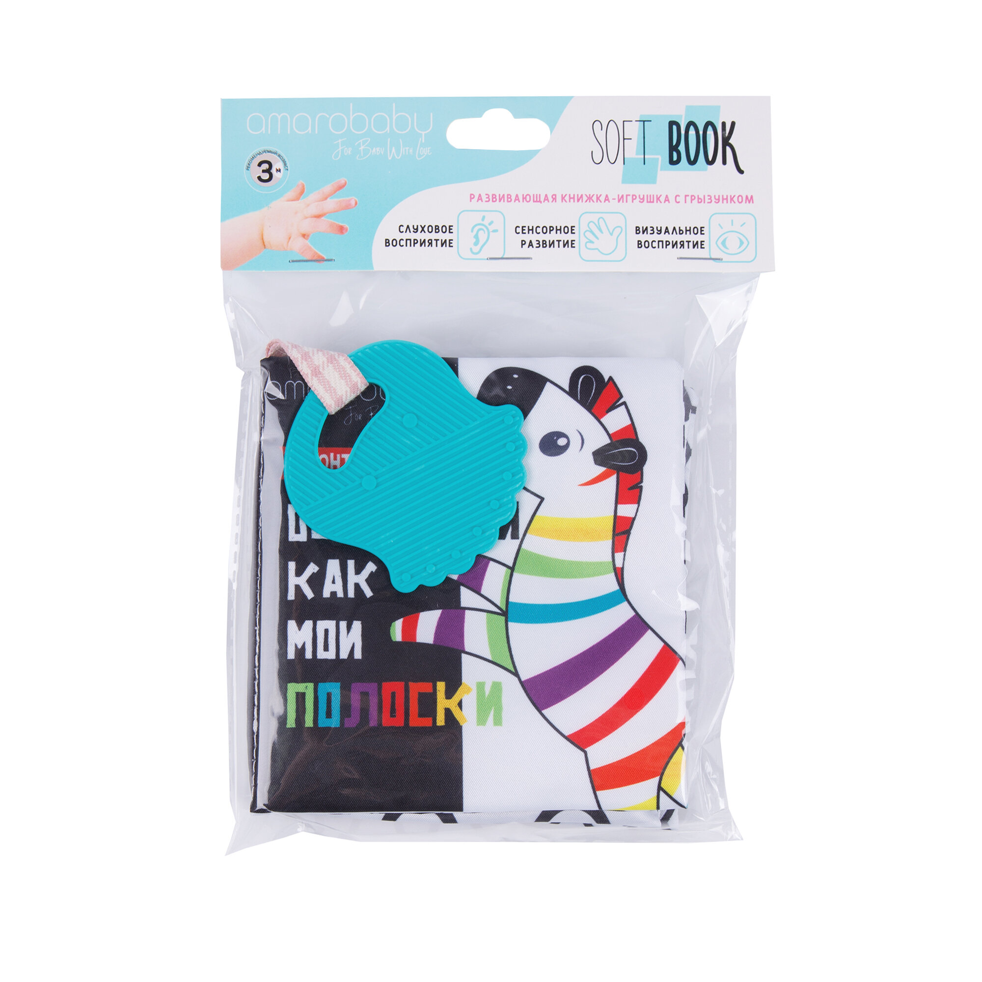 Книжка-игрушка с грызунком AMAROBABY Soft Book, Контрасты