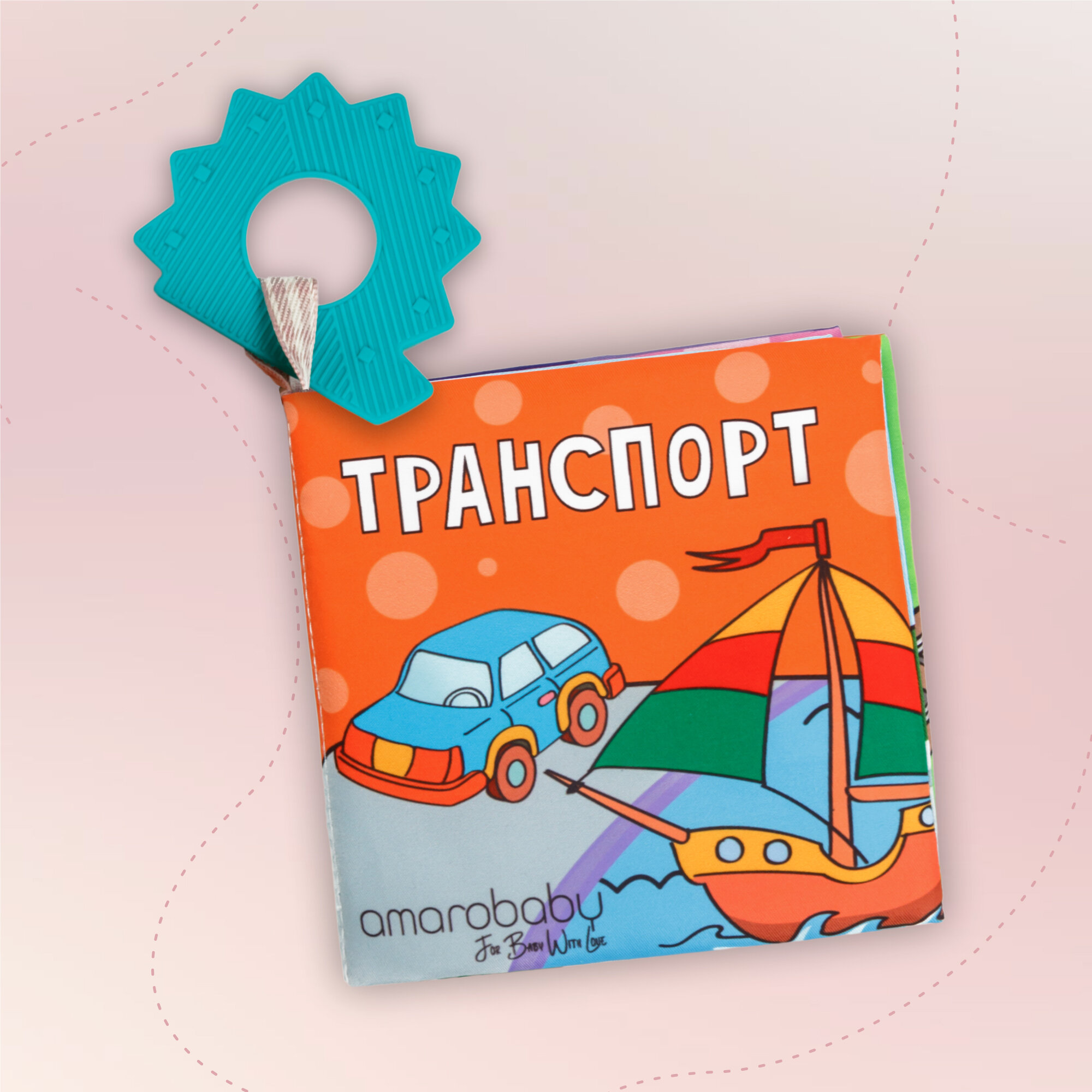 Книжка-игрушка с грызунком AMAROBABY Soft Book, Транспорт интересное: