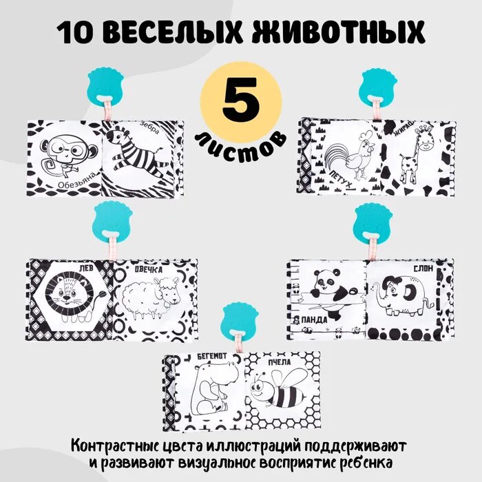 Книжка-игрушка с грызунком AMAROBABY Soft Book, Контрасты