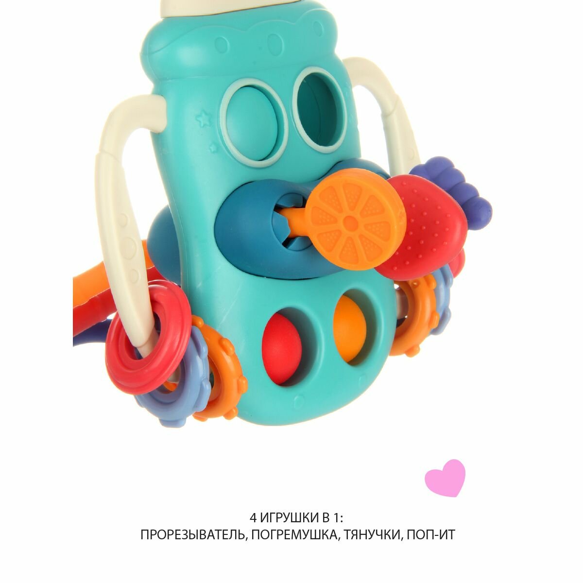Тактильная игрушка тянучка для малышей 4 в 1, Veld Co / Развивающий прорезыватель для новорожденных, 132435